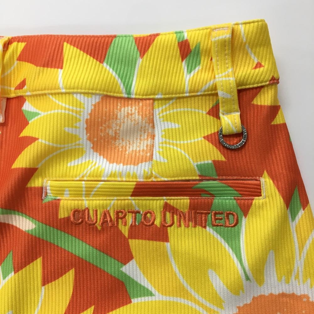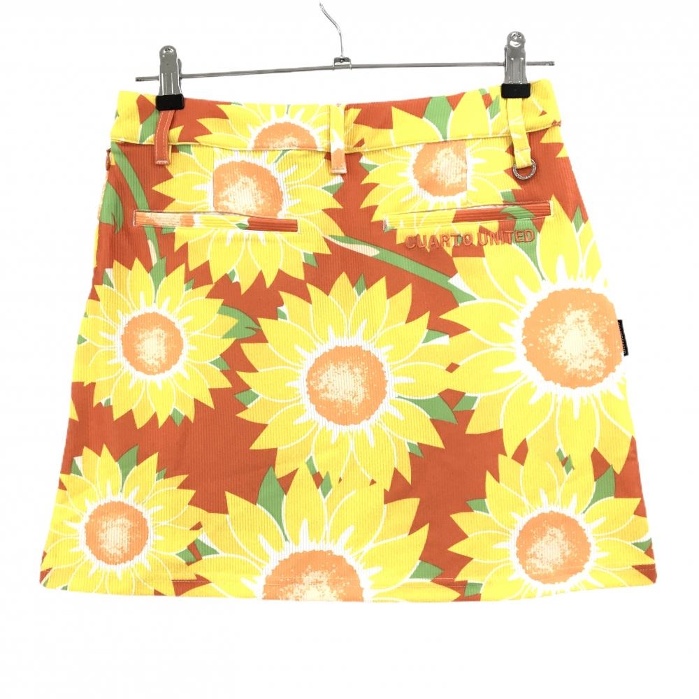 【新品】クアルトユナイテッド スカート オレンジ×イエロー ひまわり総柄 ストレッチ レディース M ゴルフウェア CUARTO UNITED