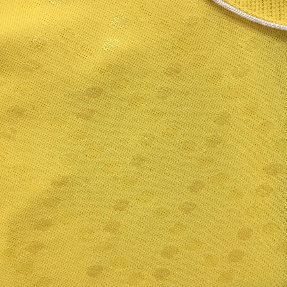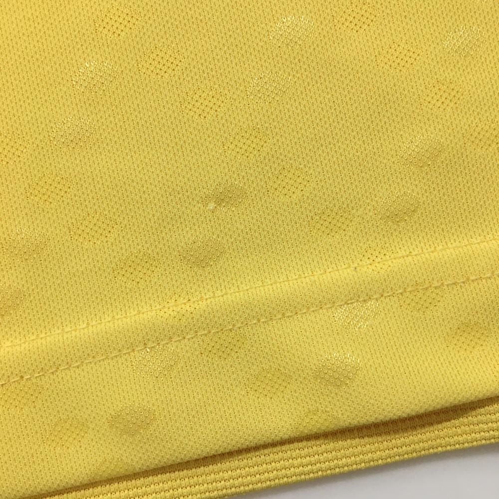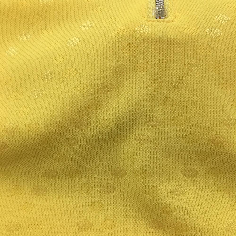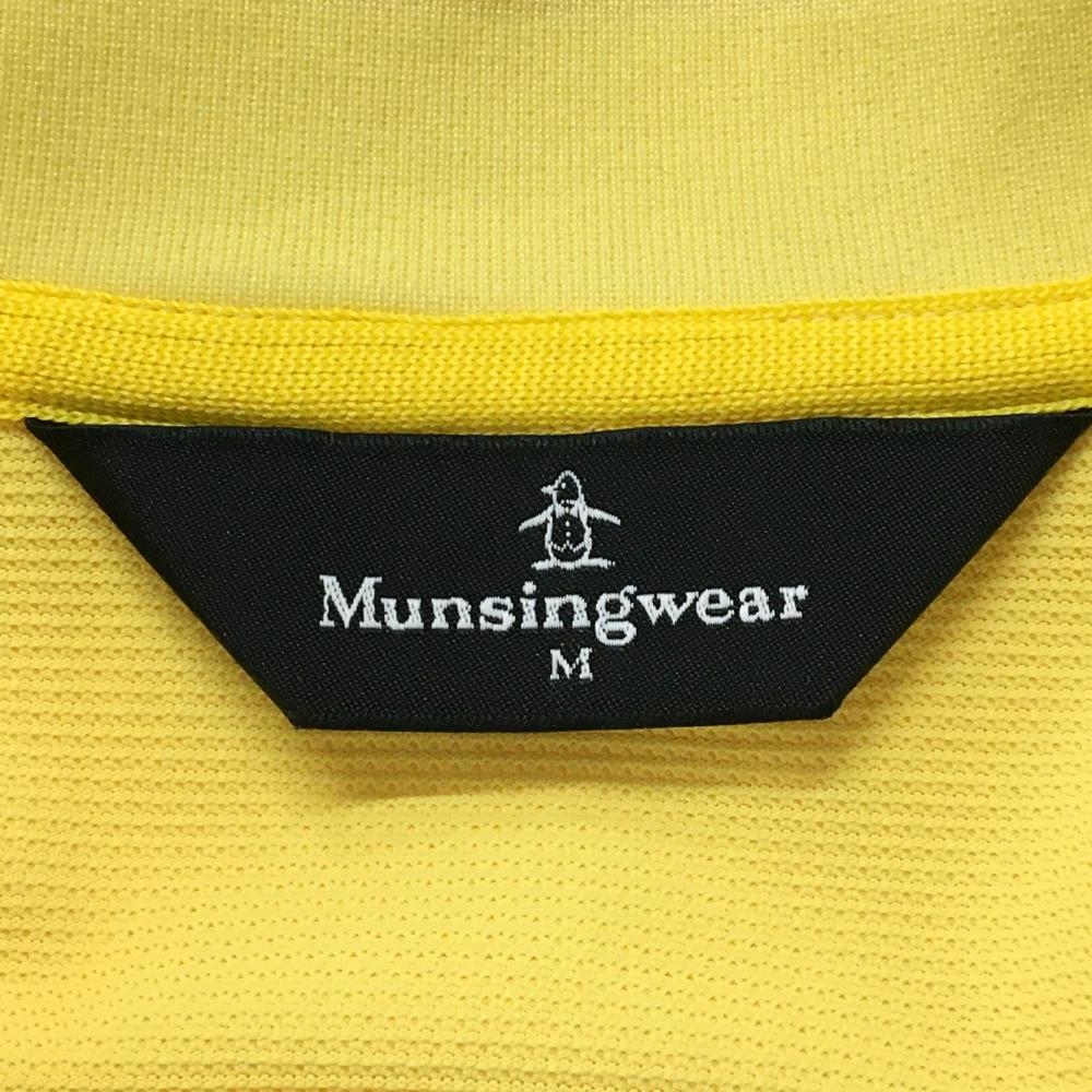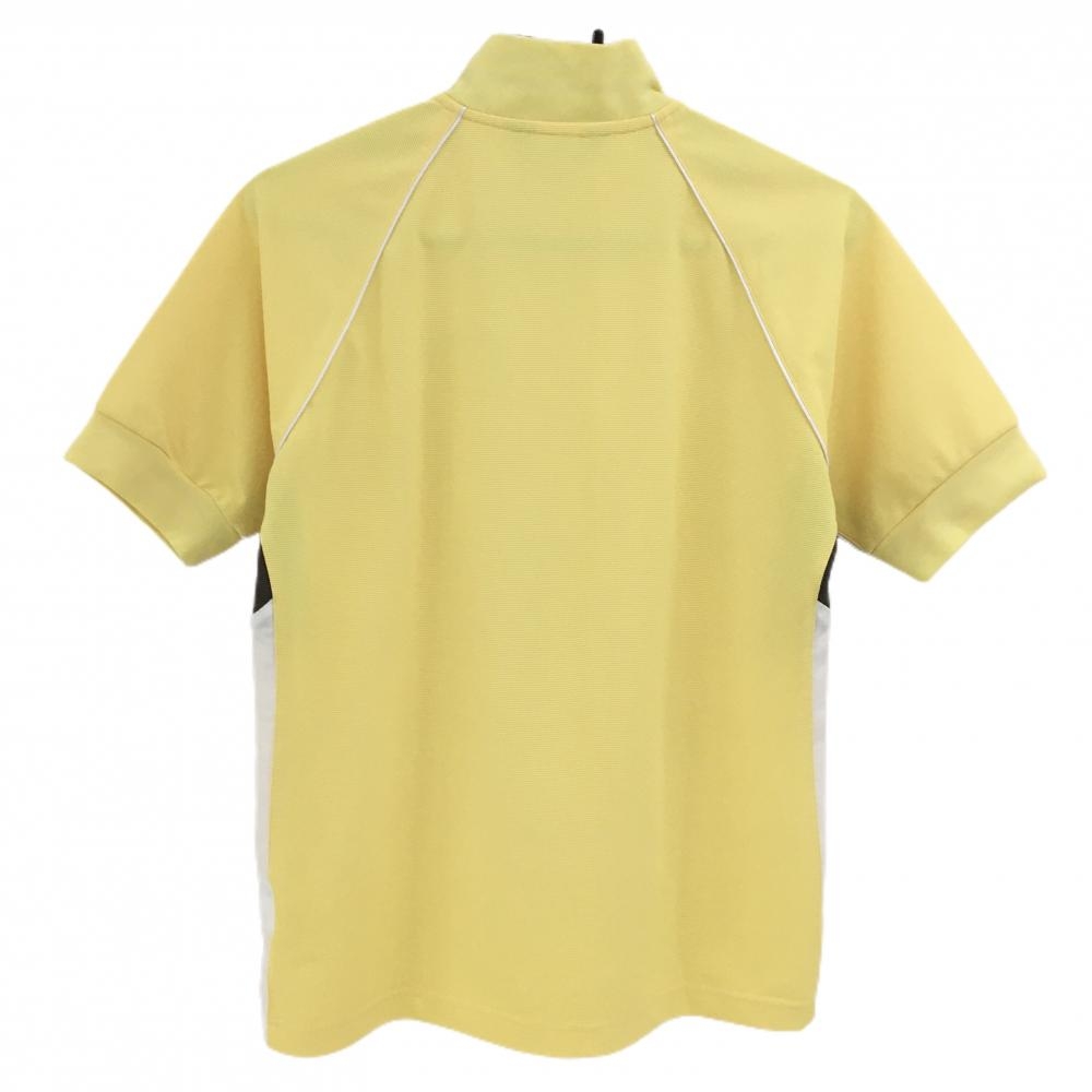 マンシングウェア 半袖ハイネックシャツ イエロー×ダークブラウン ダイヤ柄地模様 ハーフジップ メンズ M ゴルフウェア Munsingwear