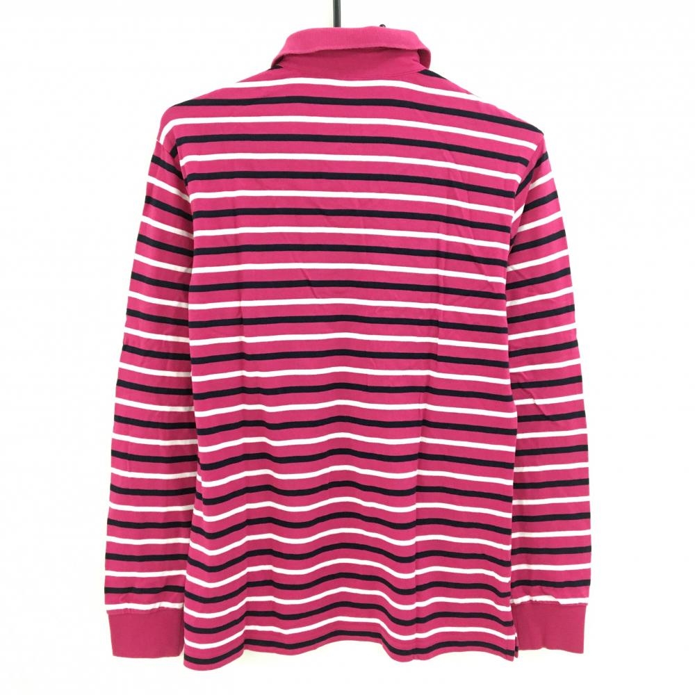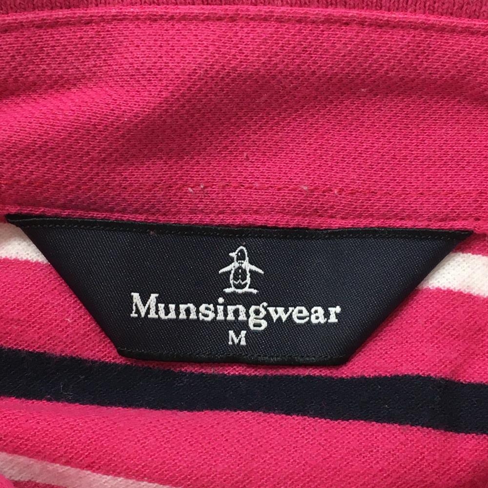 マンシングウェア 長袖ポロシャツ レッドピンク×ネイビー ボーダー ロゴ刺しゅう メンズ M ゴルフウェア Munsingwear
