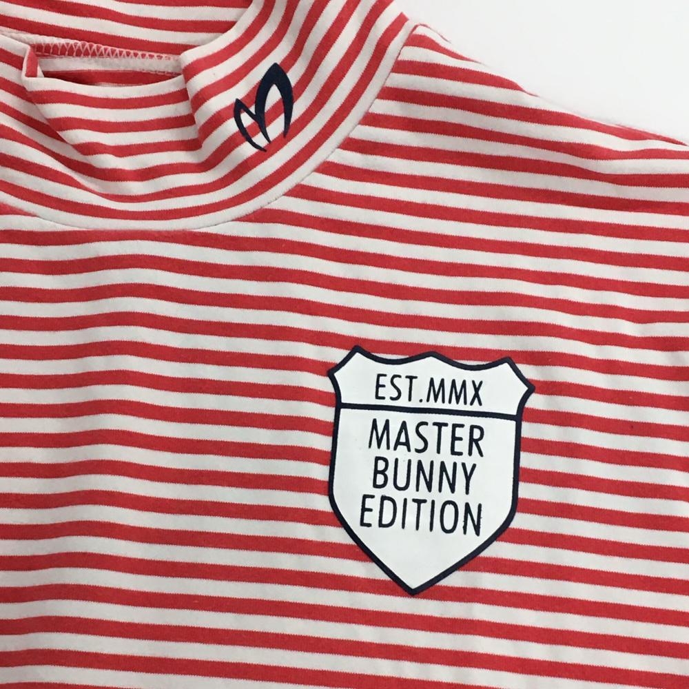 マスターバニー 長袖ハイネックシャツ 白×レッド ボーダー メンズ 5(L) ゴルフウェア MASTER BUNNY EDITION