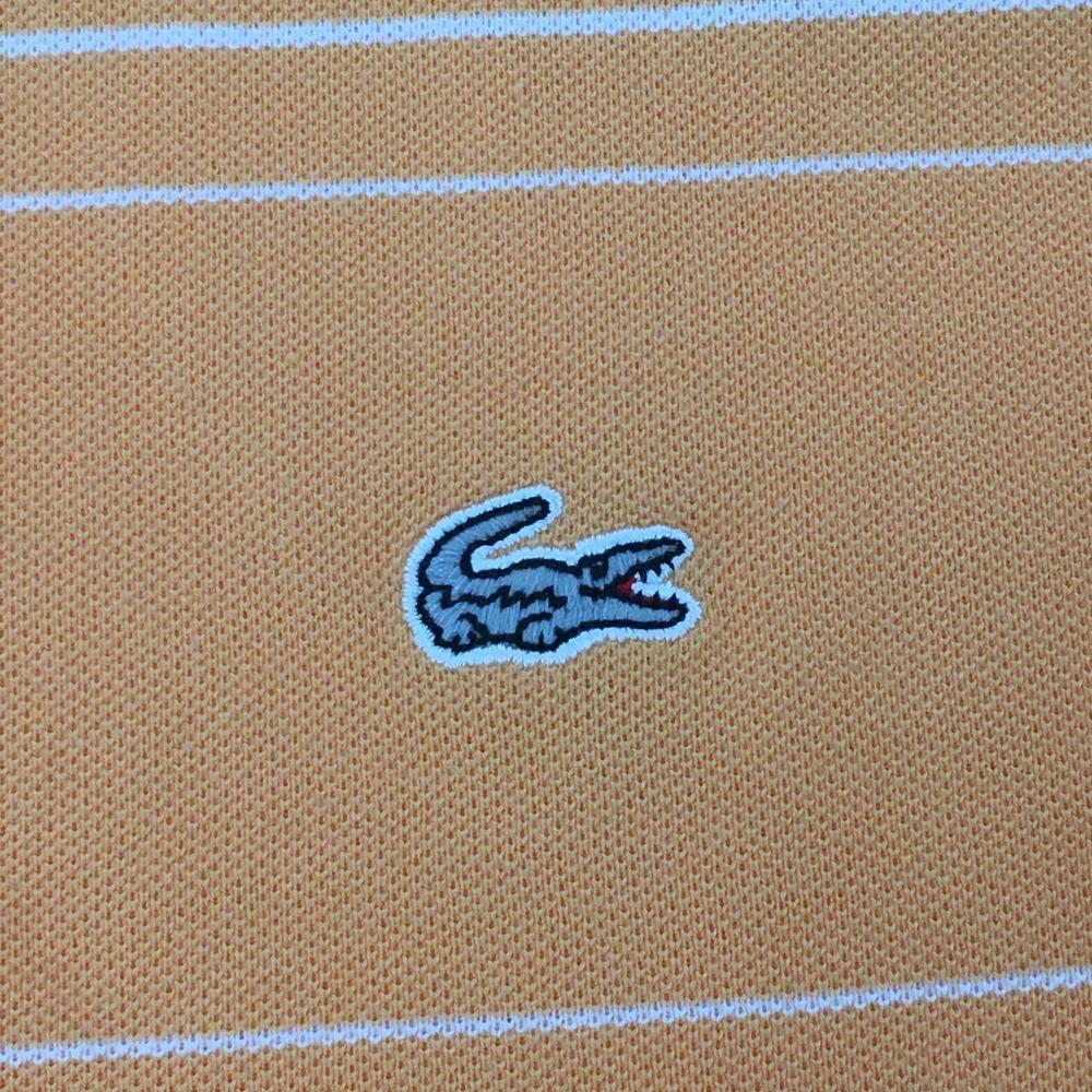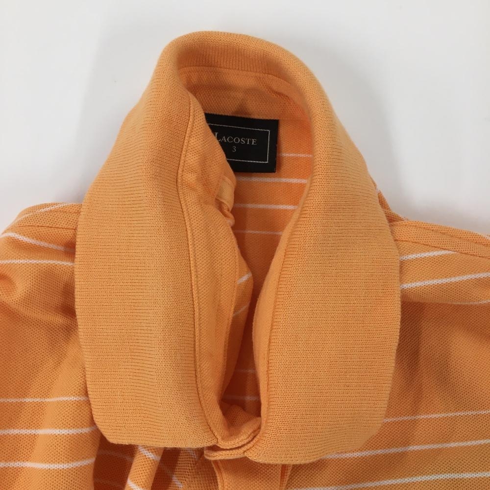 【美品】ラコステ 半袖ポロシャツ オレンジ×白 ボーダー 胸ロゴ メンズ 3(M) ゴルフウェア LACOSTE