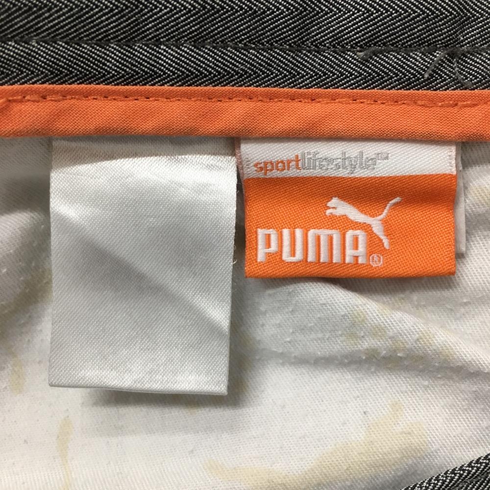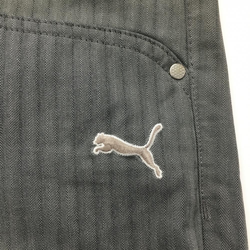 【美品】プーマ パンツ グレー ヘリンボーン織生地 ロゴ刺しゅう メンズ ゴルフウェア PUMA