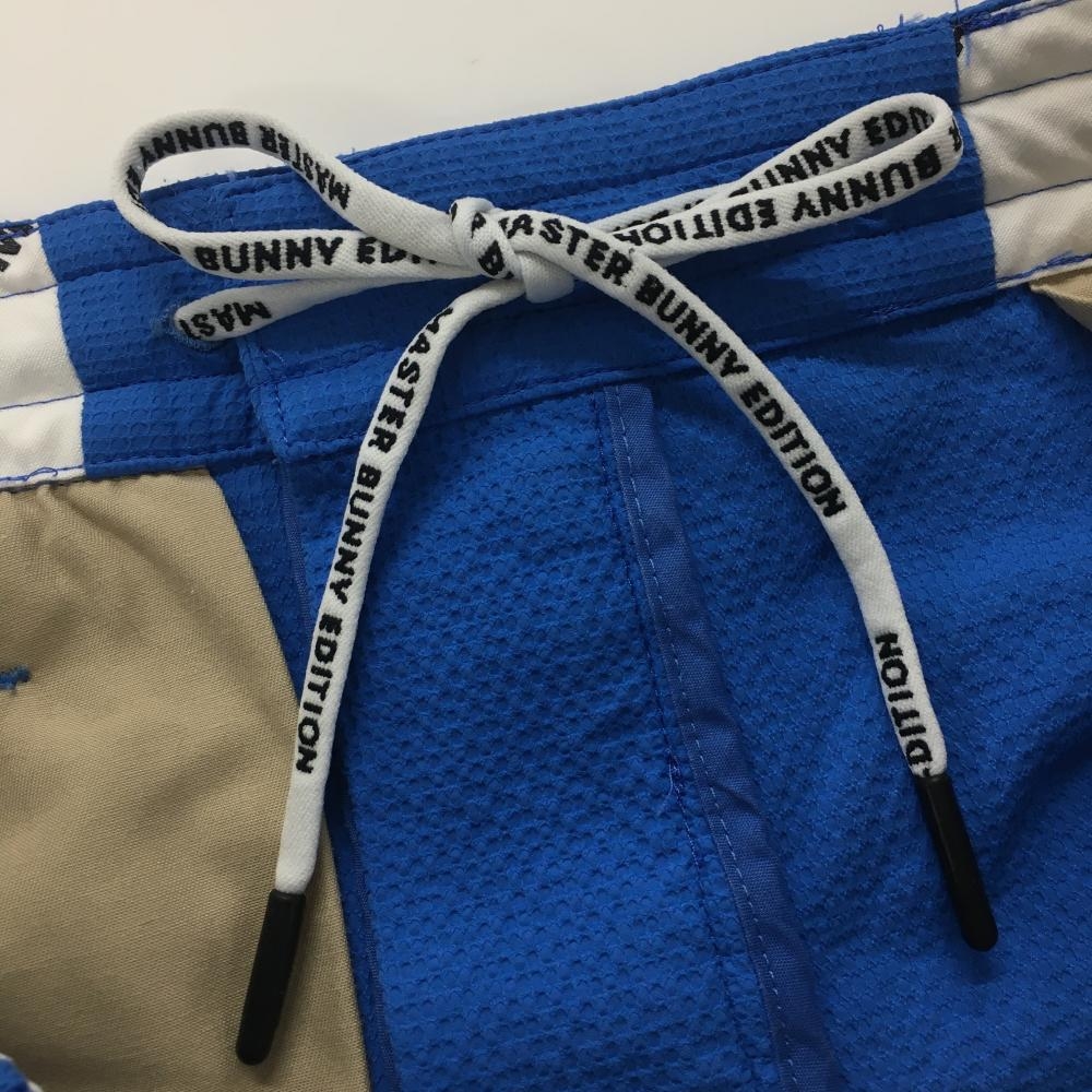 【超美品】マスターバニー ハーフパンツ ブルー 織生地 ストレッチ サイドロゴ メンズ 3(S) ゴルフウェア MASTER BUNNY EDITION
