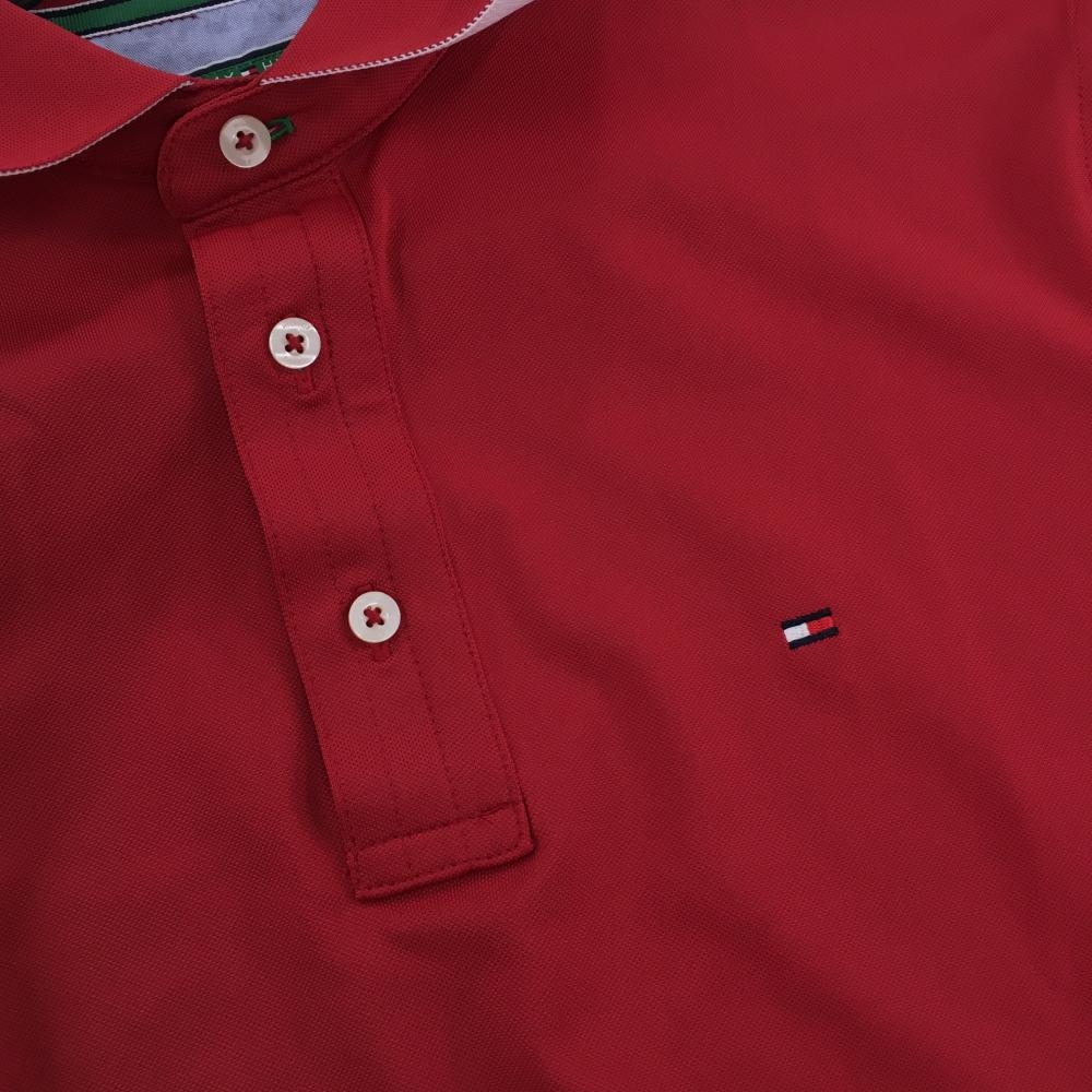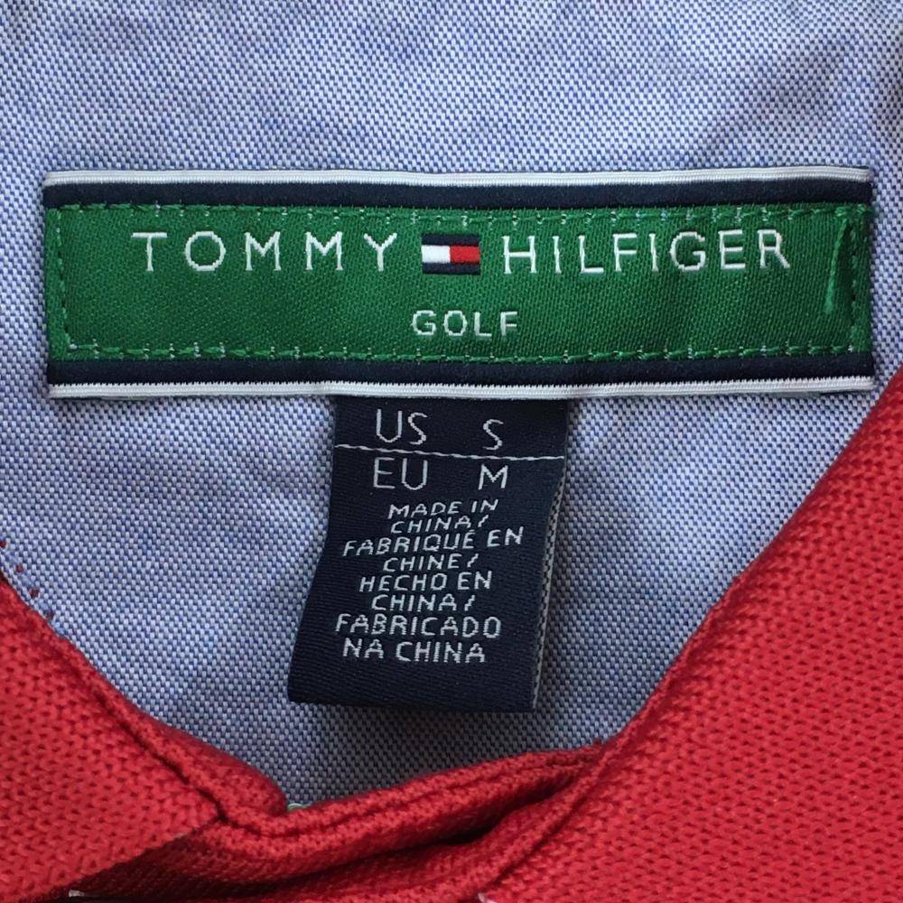 【超美品】トミーヒルフィガー 半袖ポロシャツ レッド ロゴ刺しゅう メンズ US-S ゴルフウェア Tommy Hilfiger Golf