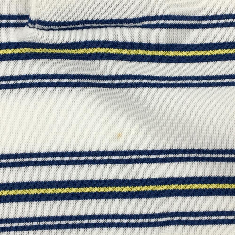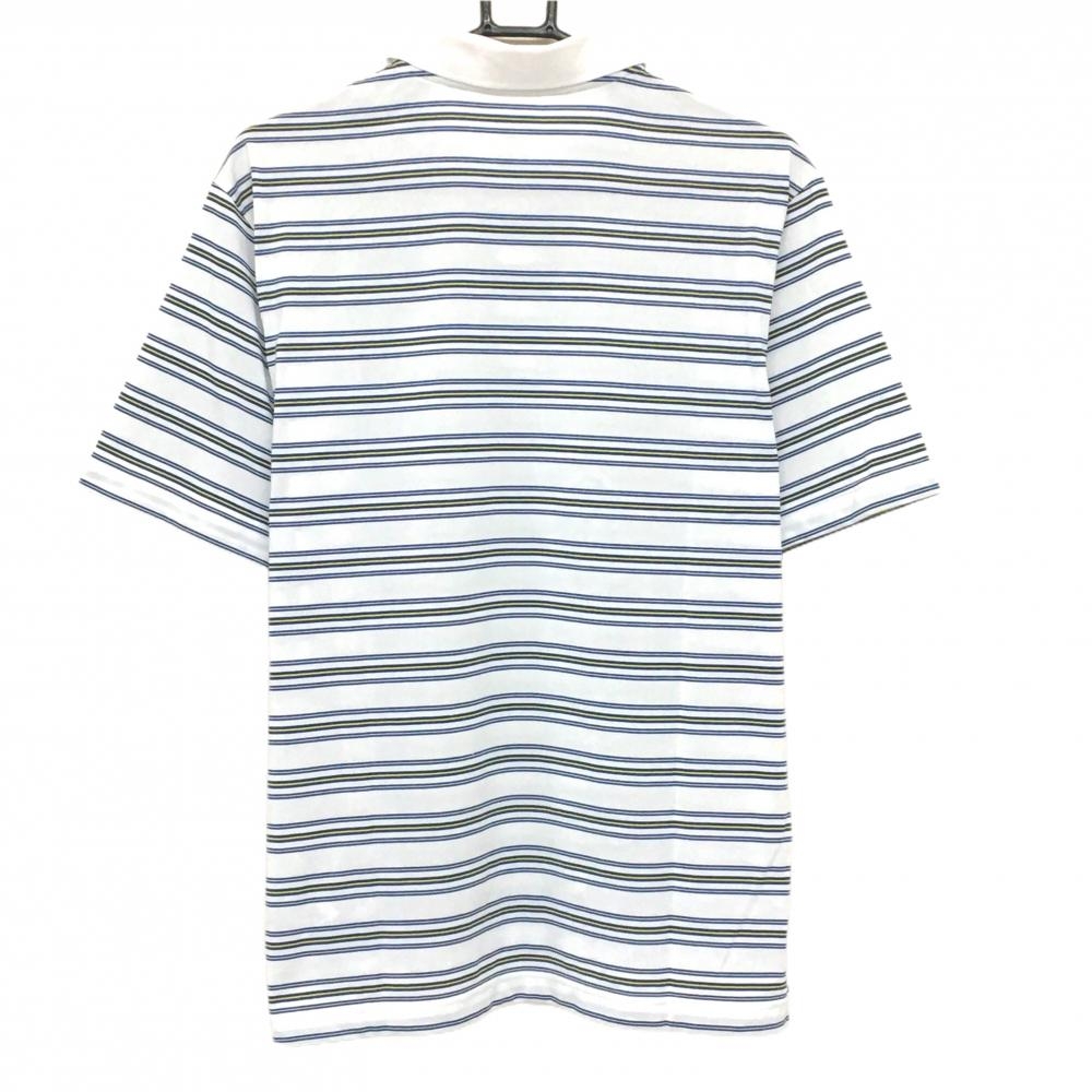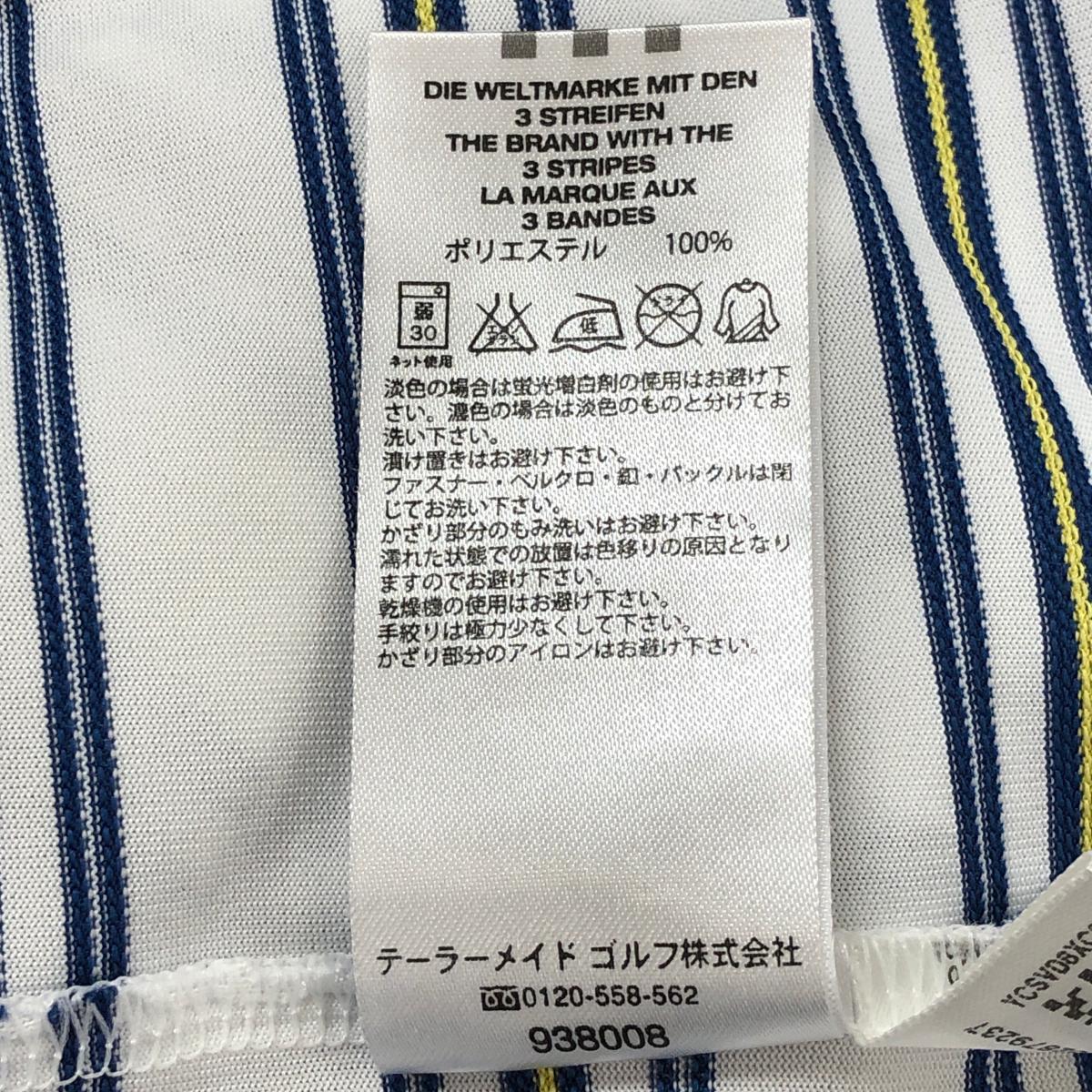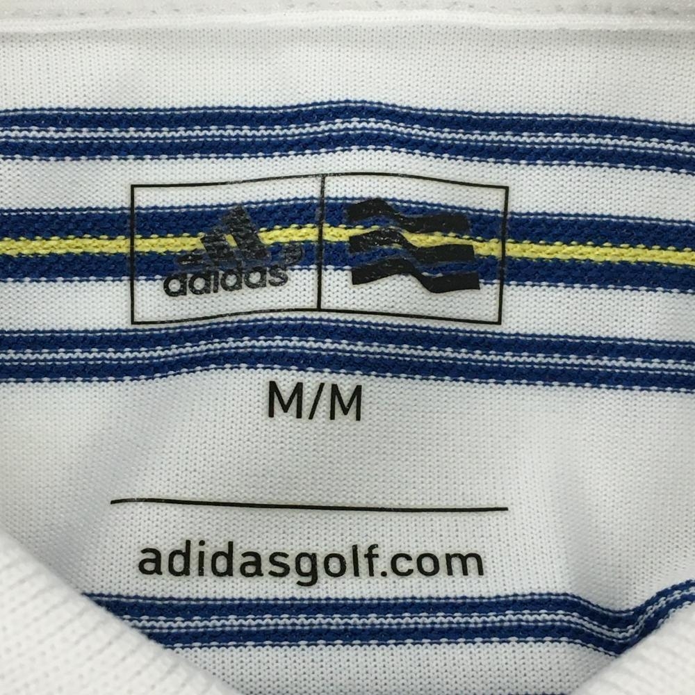 アディダス 半袖ポロシャツ 白×ネイビー ボーダー ロゴ刺しゅう メンズ M/M ゴルフウェア adidas