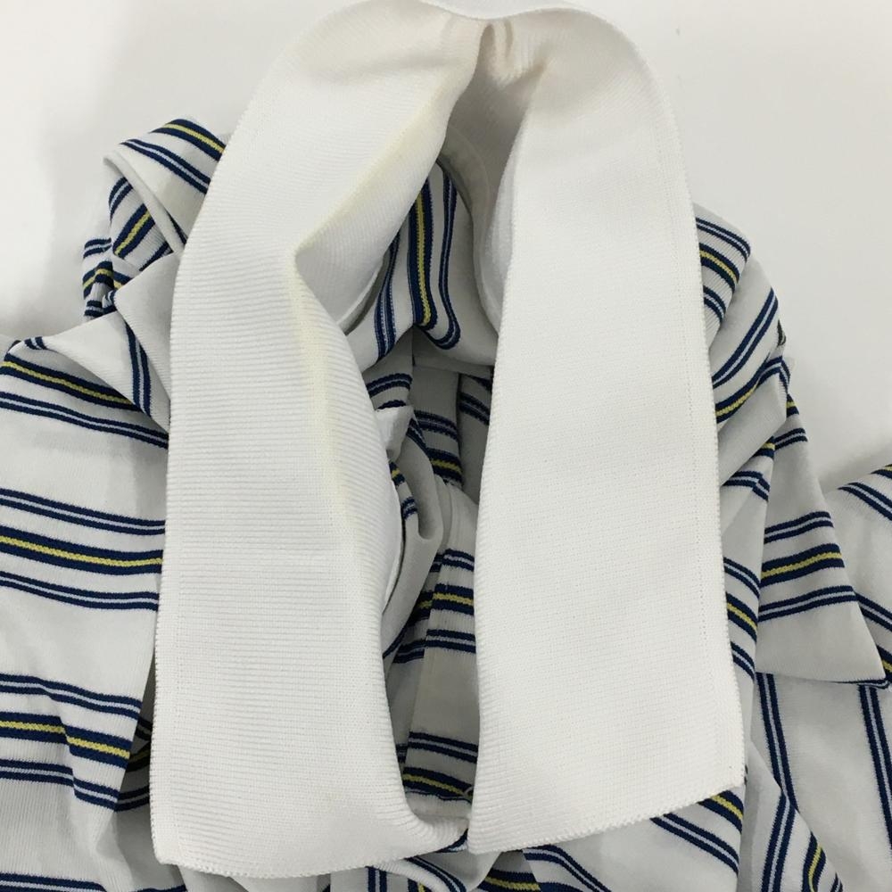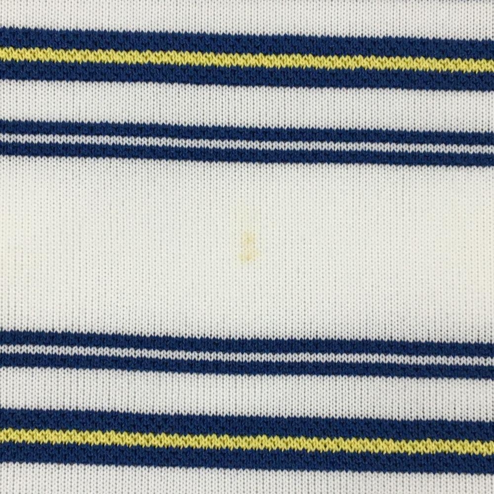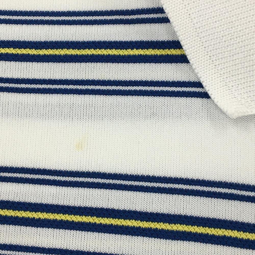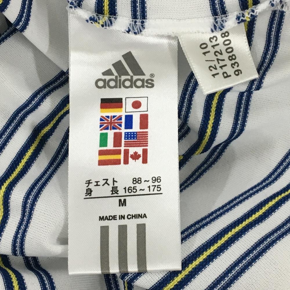 アディダス 半袖ポロシャツ 白×ネイビー ボーダー ロゴ刺しゅう メンズ M/M ゴルフウェア adidas