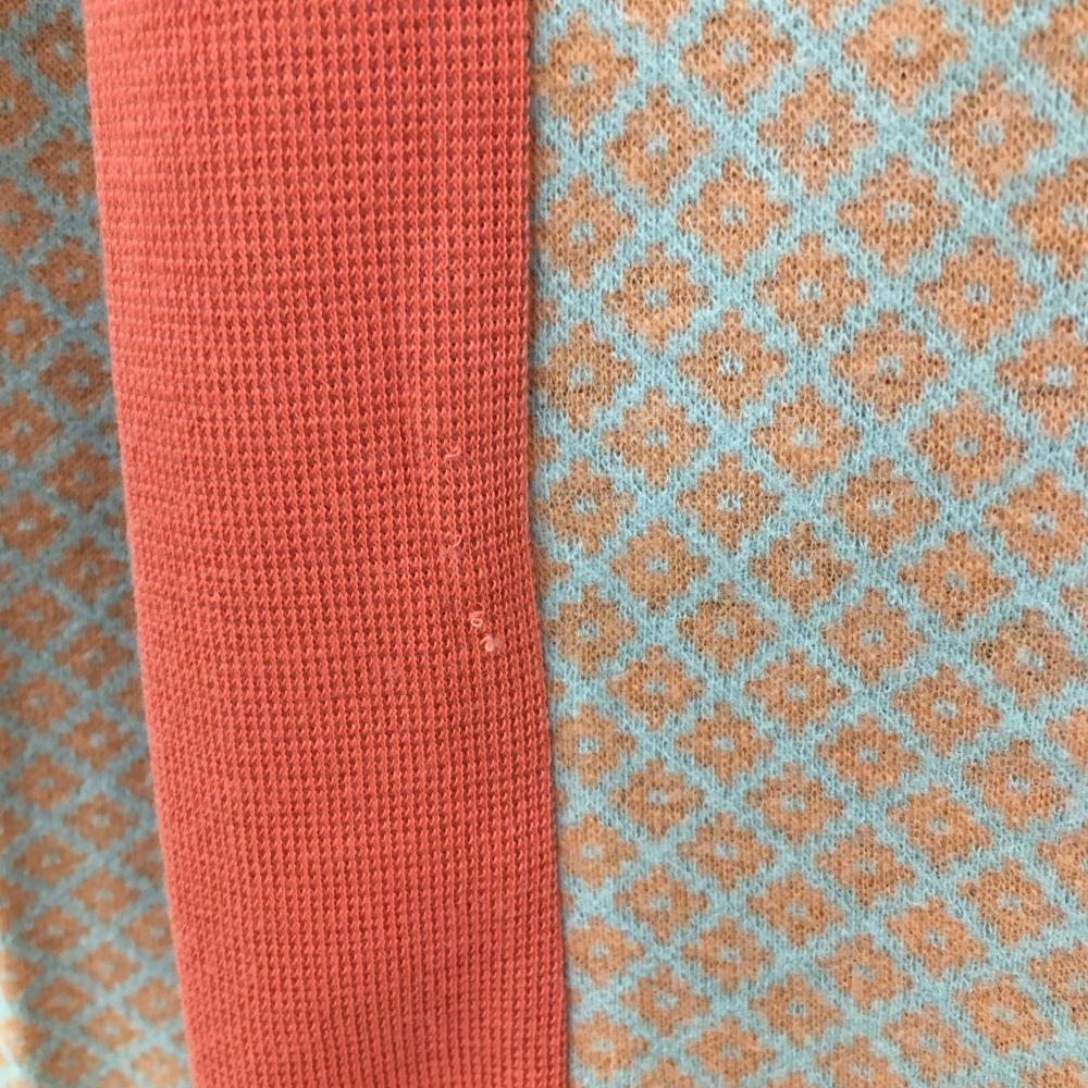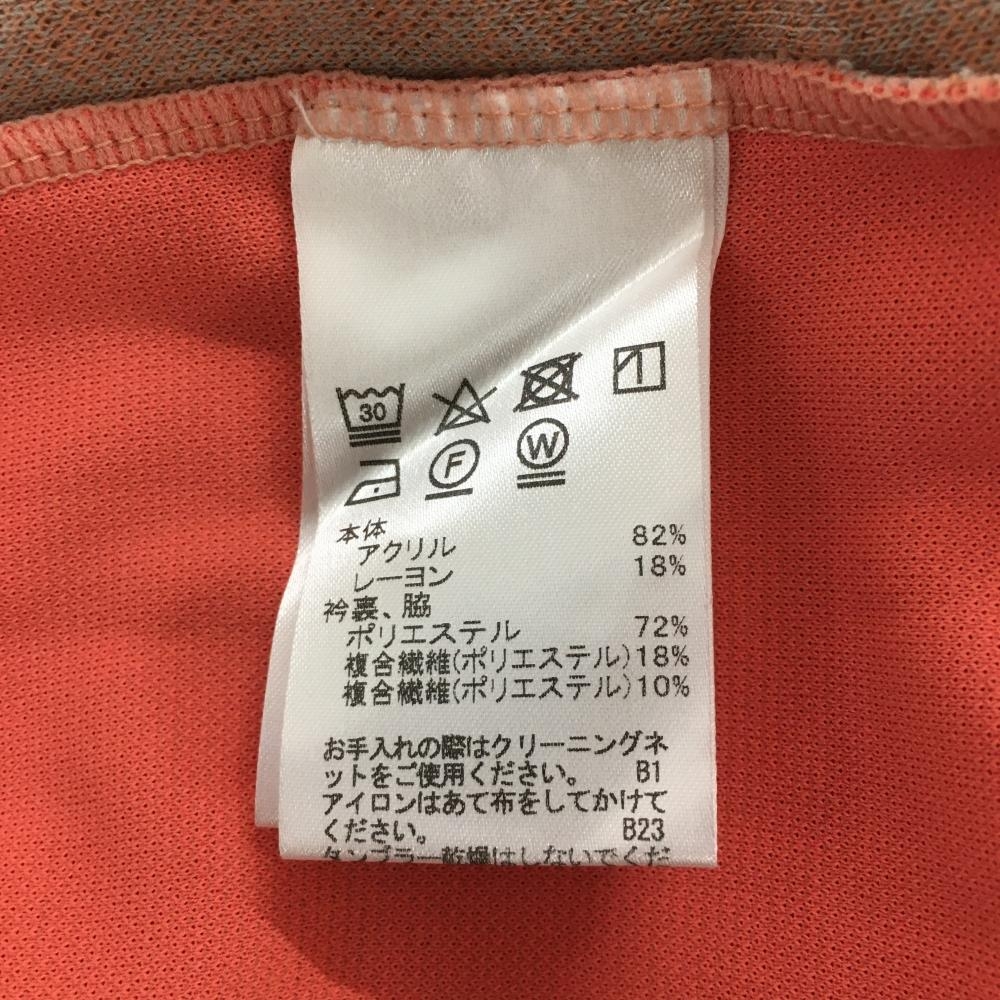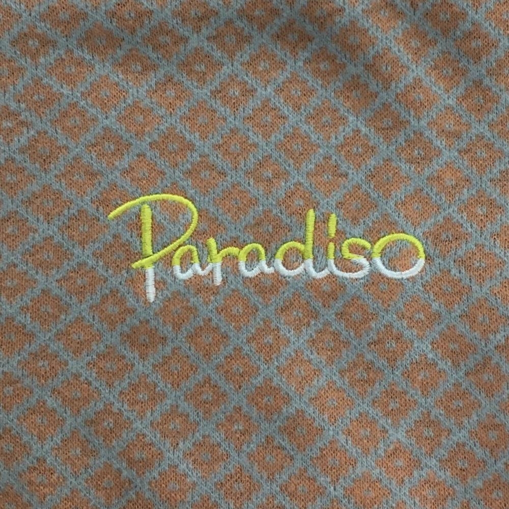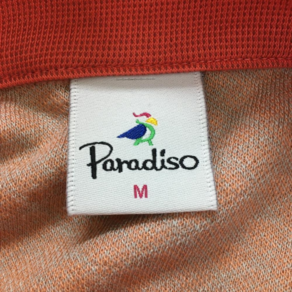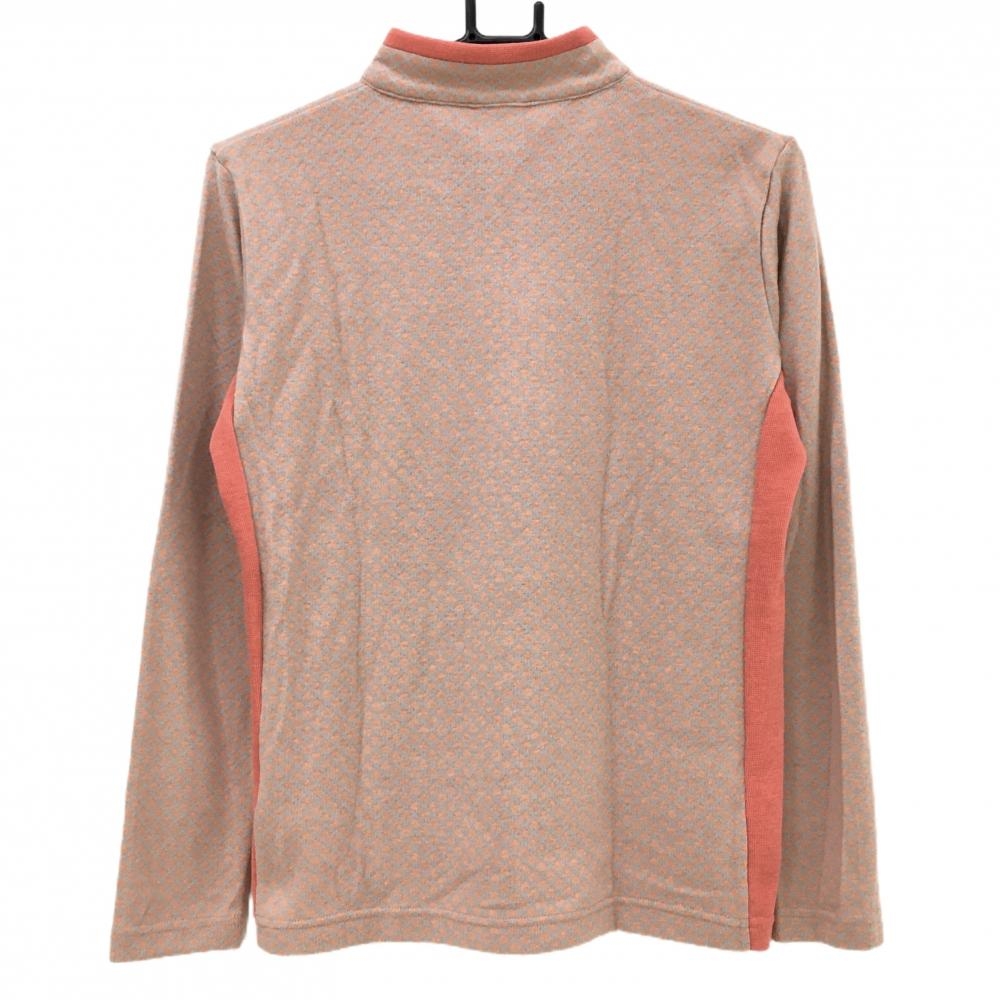 【超美品】パラディーゾ 長袖ハイネックシャツ サーモンピンク×グレー 総柄 ハーフジップ ニット レディース M ゴルフウェア Paradiso
