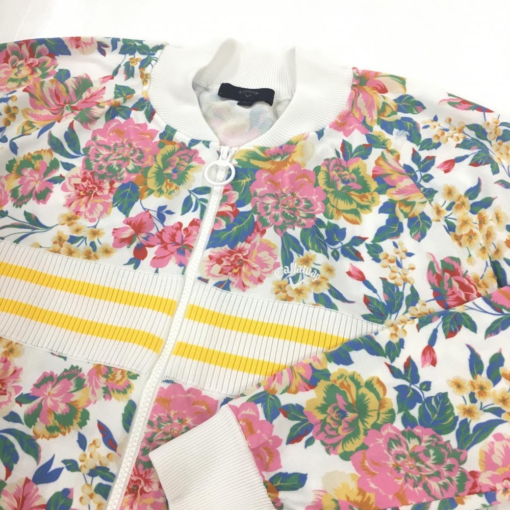 キャロウェイ ニットジャケット 白×マルチカラー 花柄 薄手 レディース L ゴルフウェア Callaway