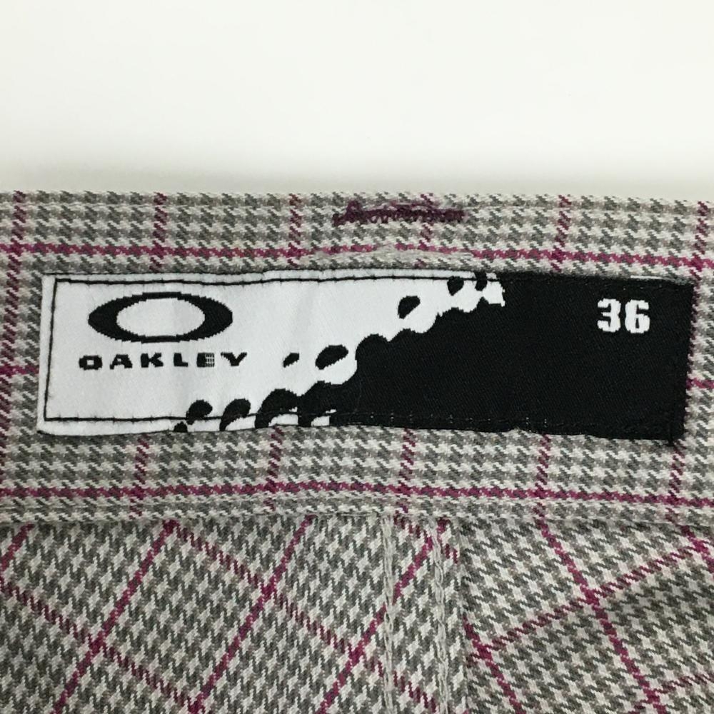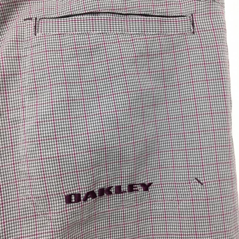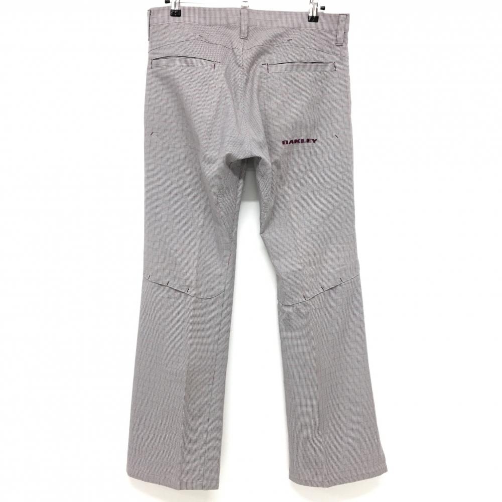 【超美品】オークリー パンツ グレー×ボルドー 細目千鳥格子 チェック ティー装着可 メンズ 36 ゴルフウェア Oakley