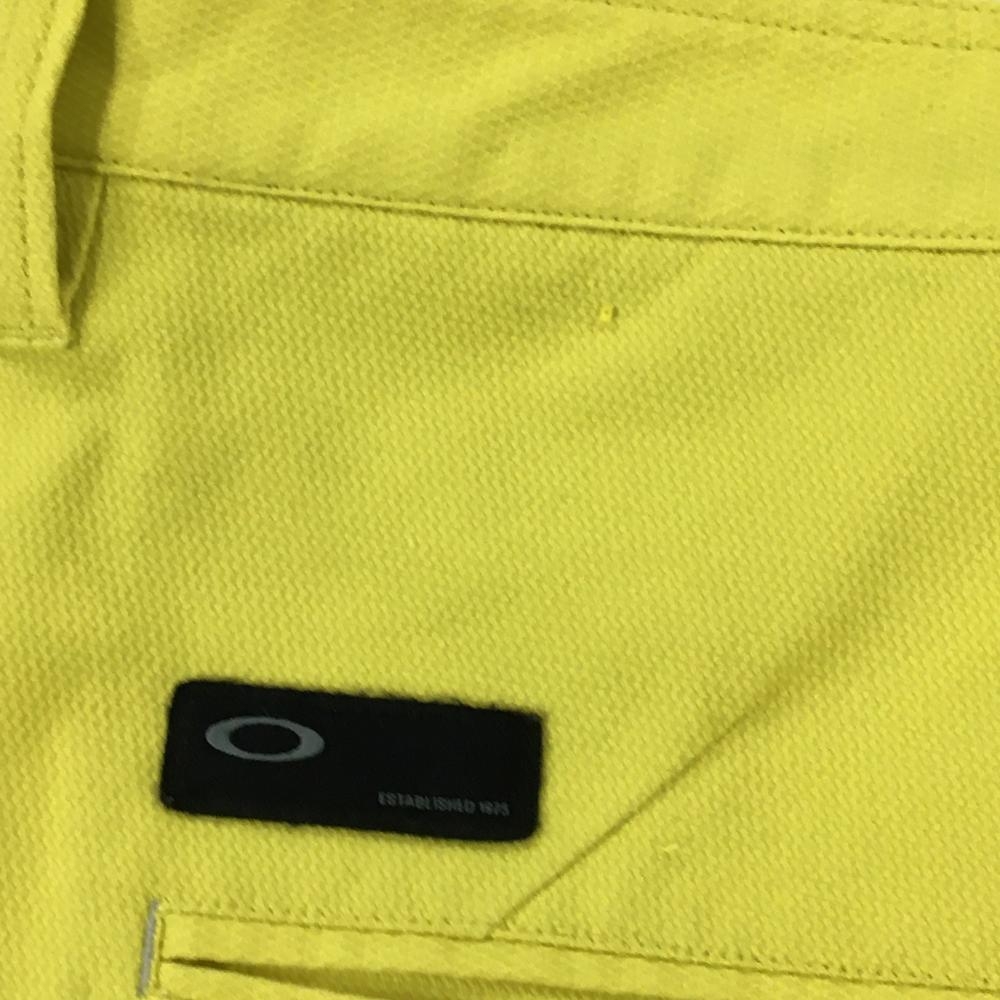 【美品】オークリー パンツ イエロー ティー装着可 スカル メンズ 38 ゴルフウェア Oakley