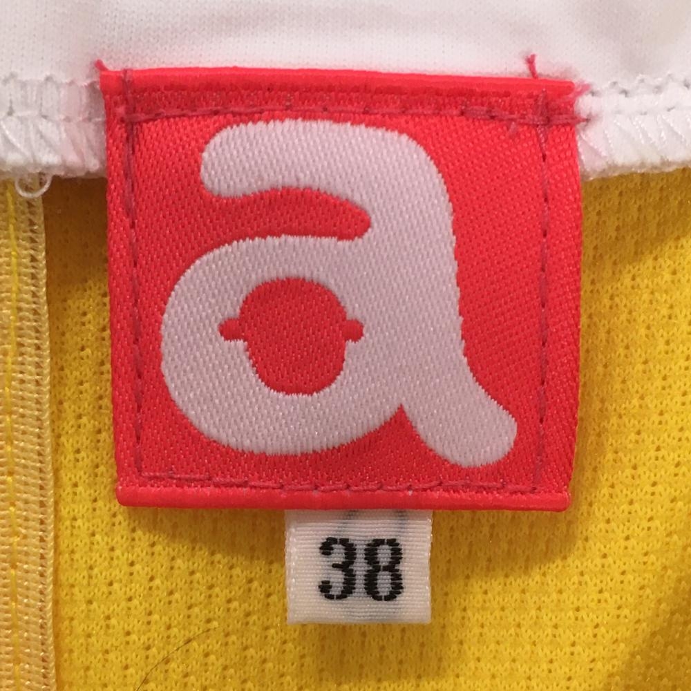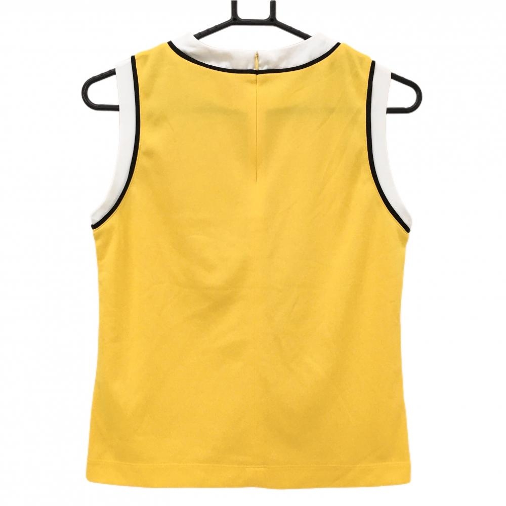 【美品】アルチビオ ノースリーブシャツ イエロー×白 ラインストーンロゴ 後ろハーフジップ レディース 38(M) ゴルフウェア archivio