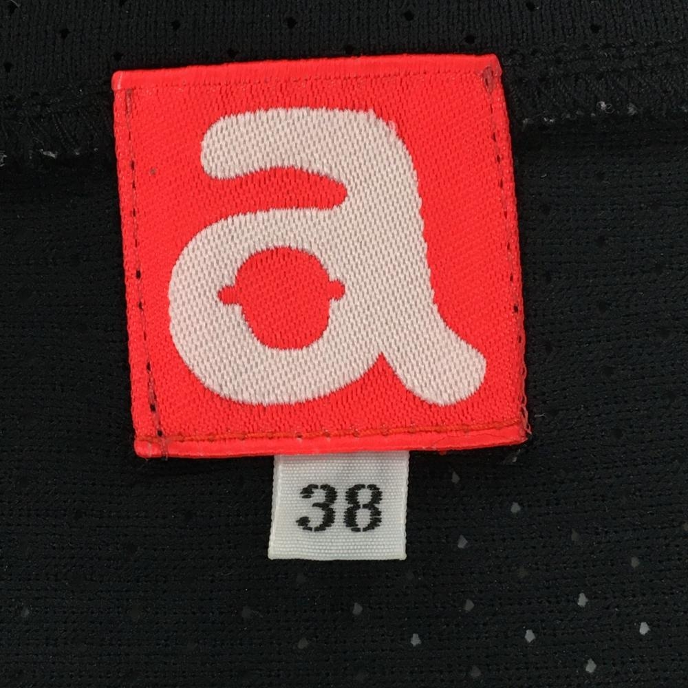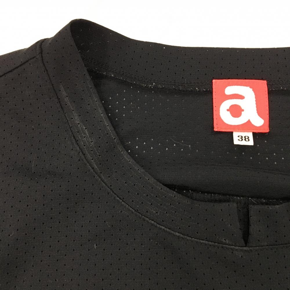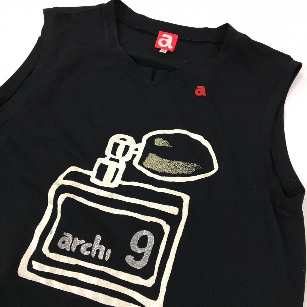 アルチビオ ノースリーブシャツ 黒×白 メッシュ生地 後ろプリーツ 香水プリント レディース 38(M) ゴルフウェア archivio