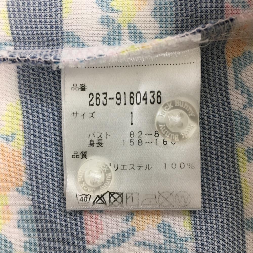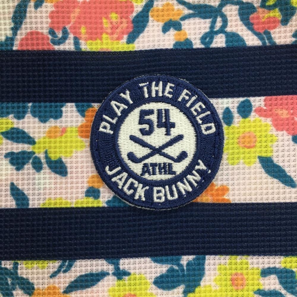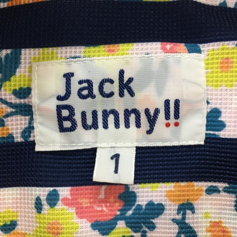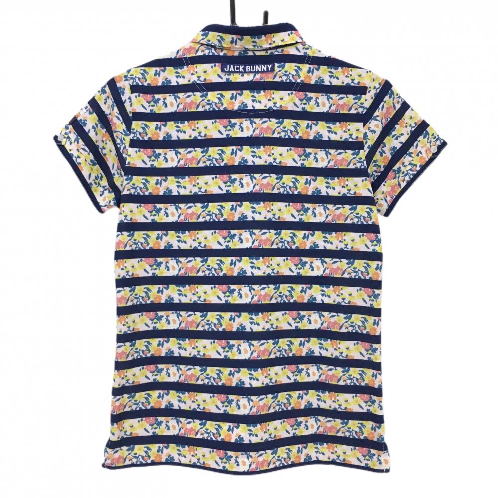 【超美品】ジャックバニー 半袖ポロシャツ マルチカラー 小花柄 ボーダー ボタンダウン LIBERTY レディース 1(M) ゴルフウェア Jack Bunny