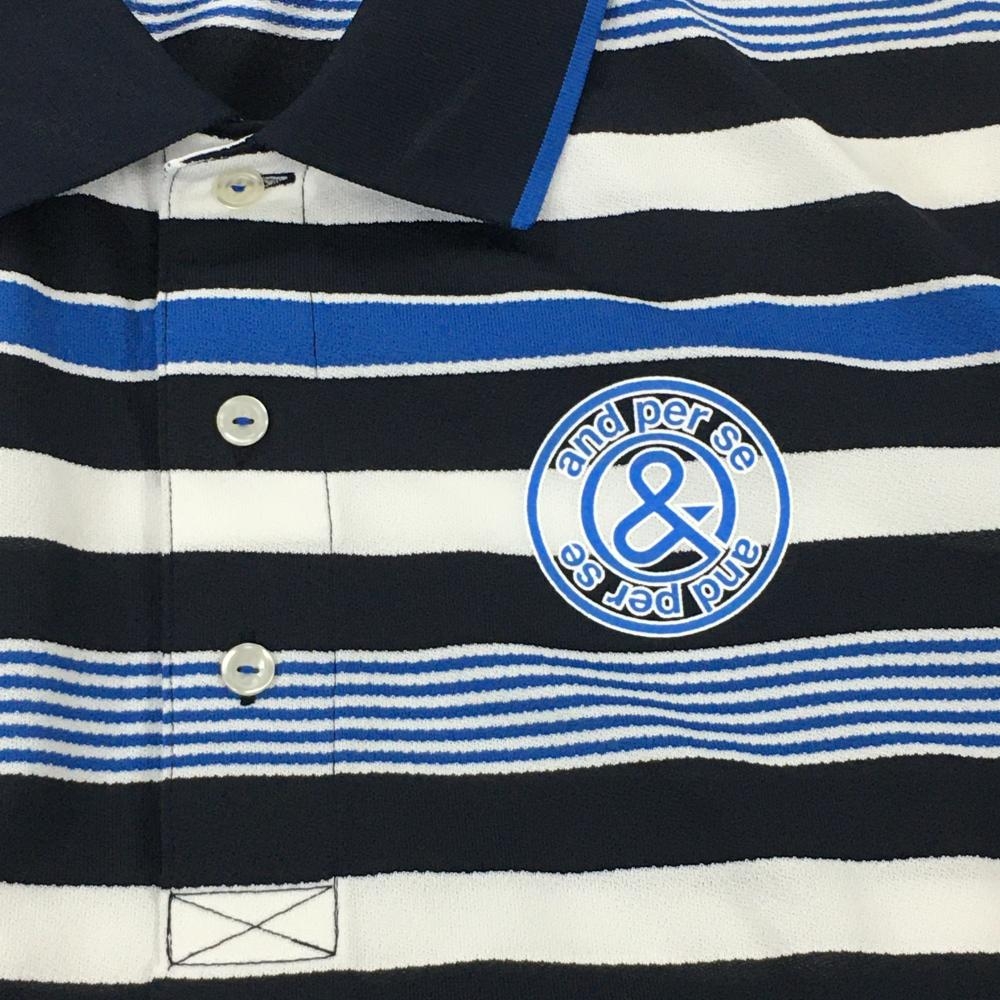 アンパスィ 半袖ポロシャツ ネイビー×白×ブルー ボーダー メンズ LL ゴルフウェア and per se