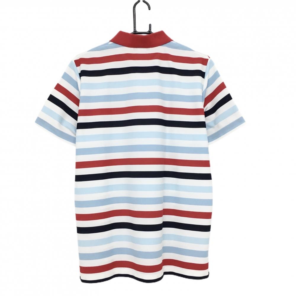 マンシングウェア 半袖ポロシャツ 白×レッド×ブルー ボーダー メンズ LL ゴルフウェア Munsingwear