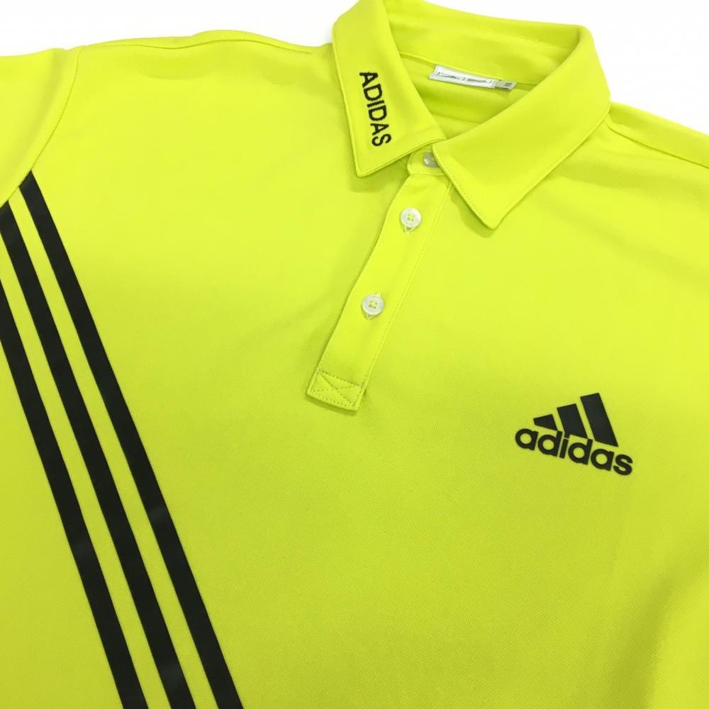 【美品】アディダス 半袖ポロシャツ グリーンイエロー 斜め3ライン メンズ O/XG ゴルフウェア adidas