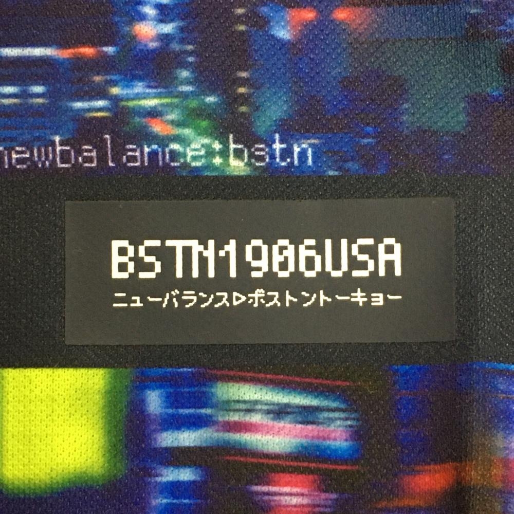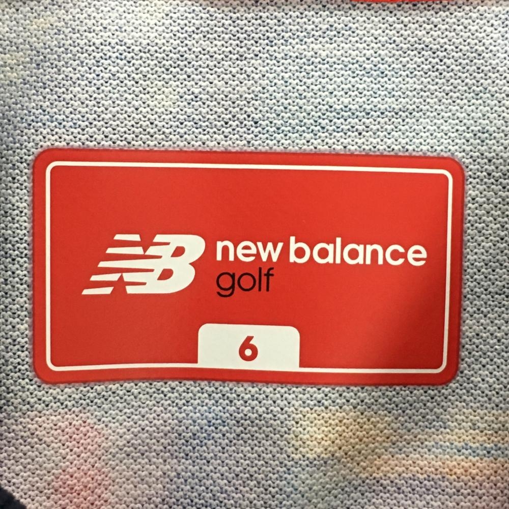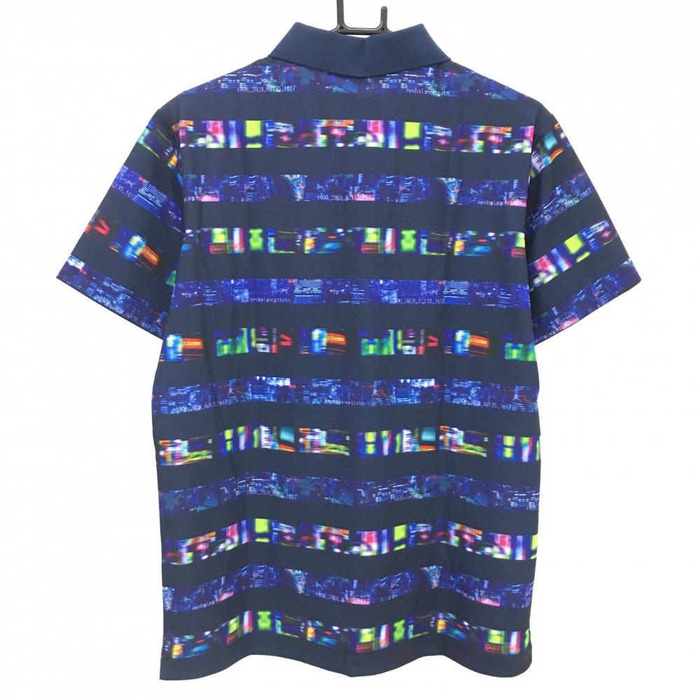 【超美品】ニューバランス 半袖ポロシャツ ネイビー×マルチカラー ボーダー 総柄 メンズ 6(XL) ゴルフウェア New Balance