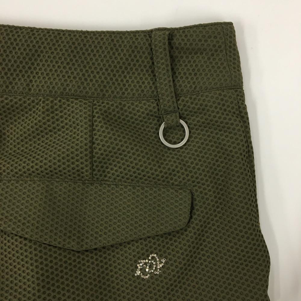 【超美品】ゾーイ パンツ カーキ 凹凸地模様 ラインストーンロゴ レディース 38(M) ゴルフウェア ZOY