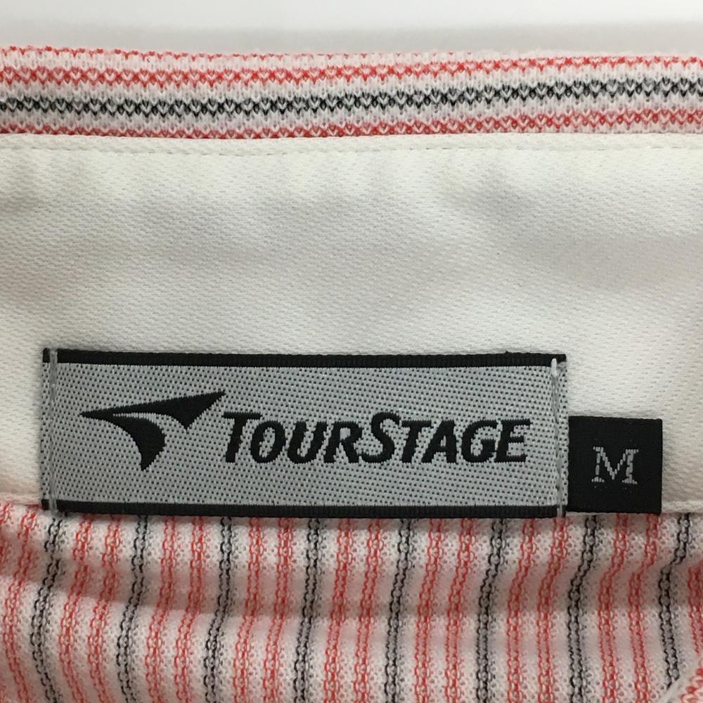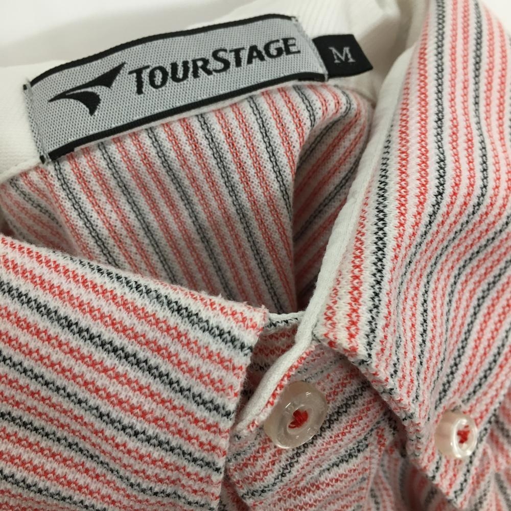 【美品】ツアーステージ 半袖ポロシャツ レッド×黒×白 ボタンダウン ストライプ メンズ M ゴルフウェア TOURSTAGE