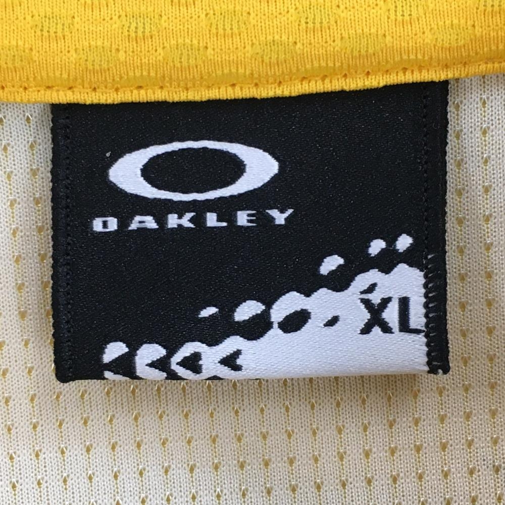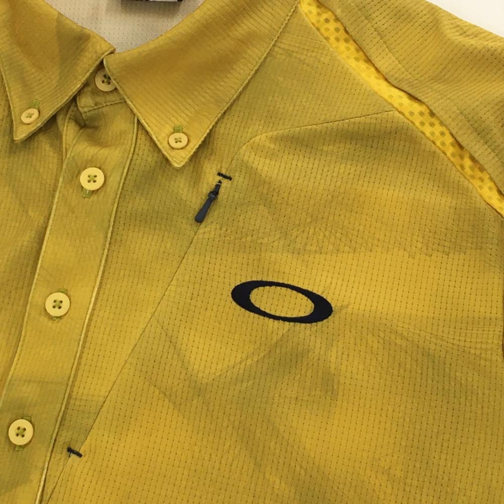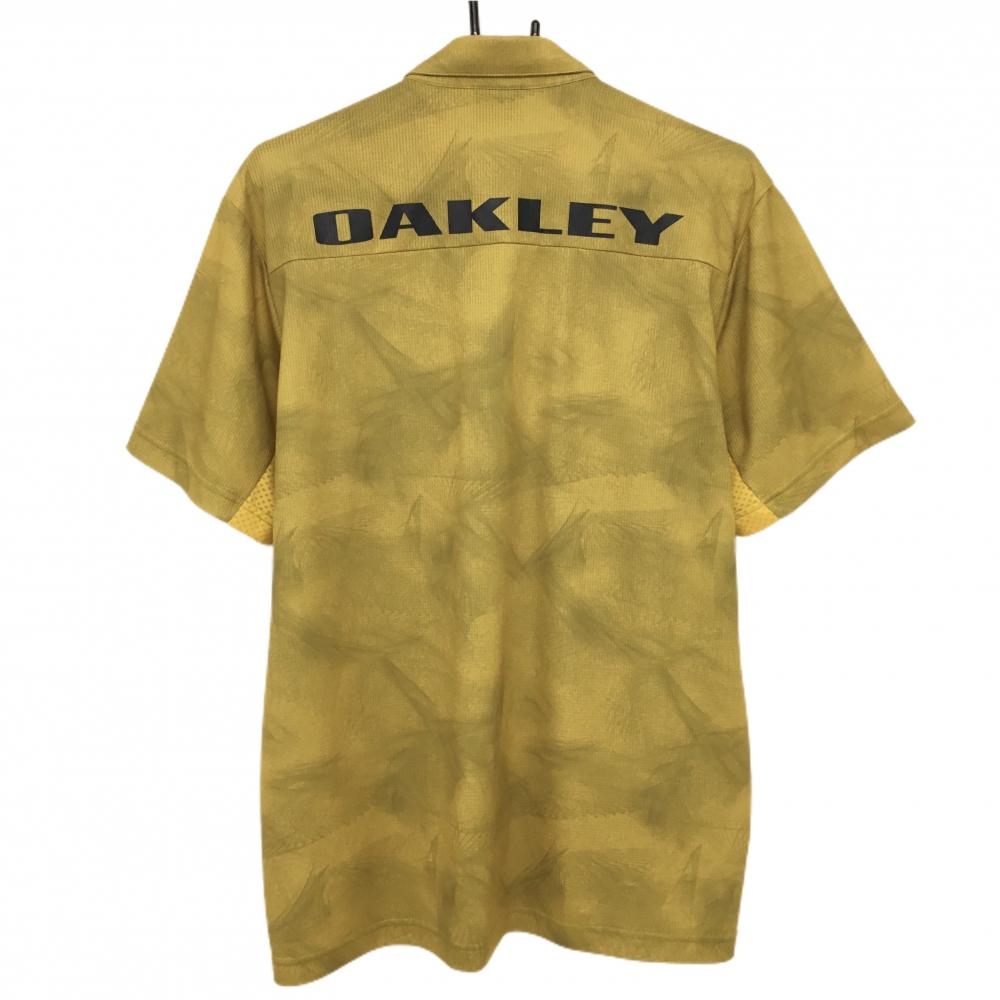 【超美品】オークリー 半袖ポロシャツ マスタードイエロー 総柄 袖下メッシュ ボタンダウン メンズ XL ゴルフウェア Oakley