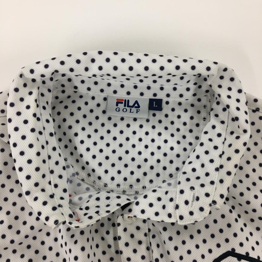 フィラゴルフ 半袖ポロシャツ 白×ネイビー ドット ボタンダウン メンズ L ゴルフウェア FILA GOLF