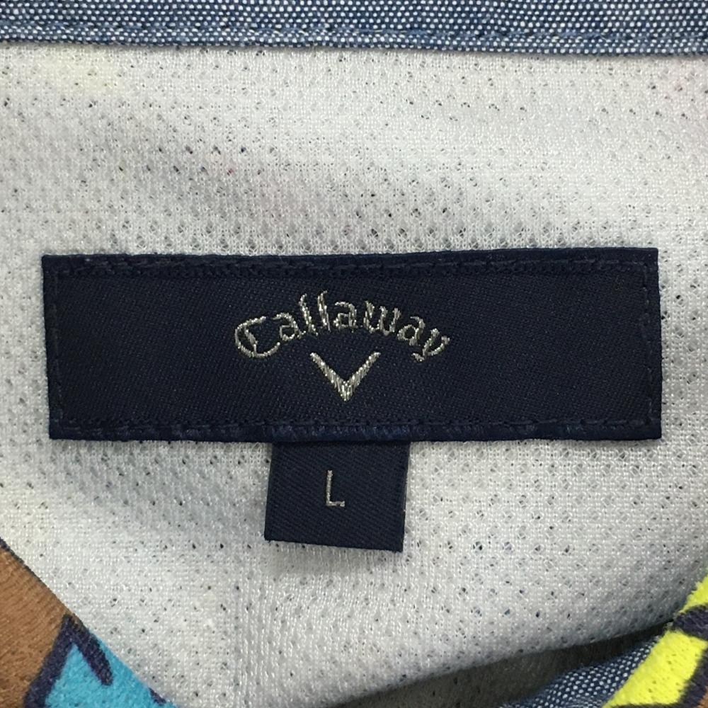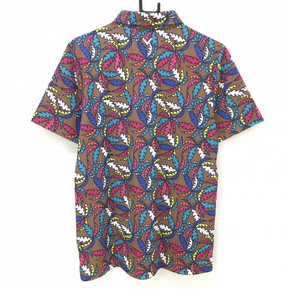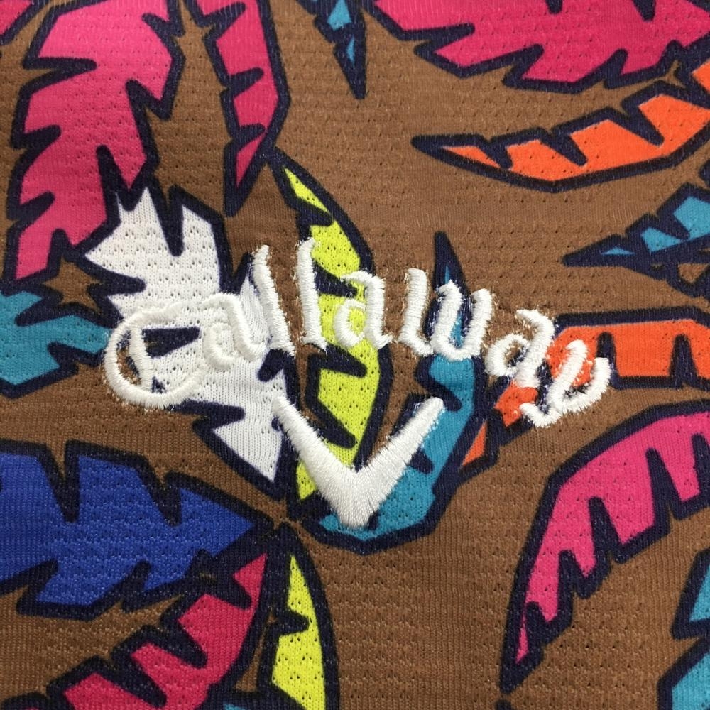 【超美品】キャロウェイ 半袖ポロシャツ ブラウン×マルチカラー ヤシの木風総柄 メンズ L ゴルフウェア Callaway