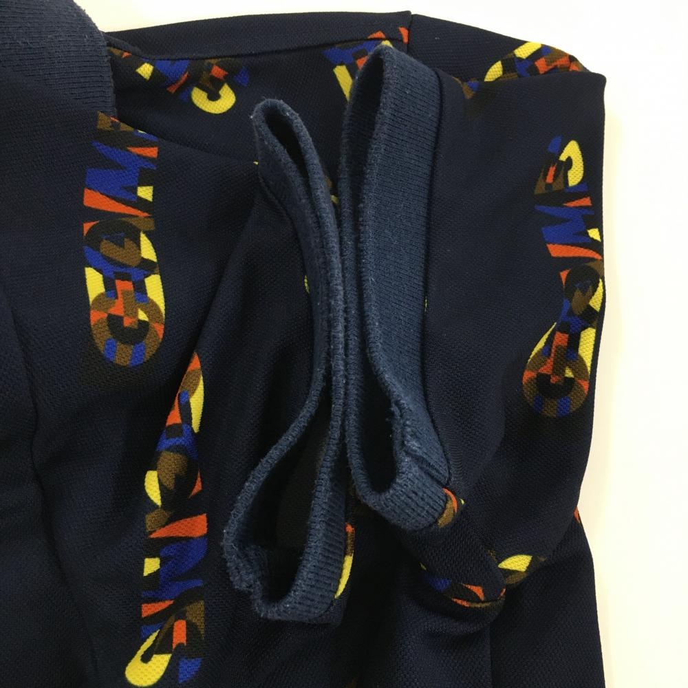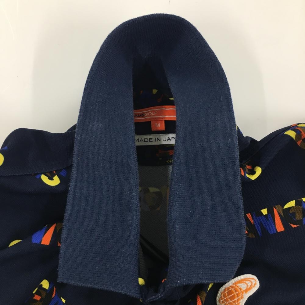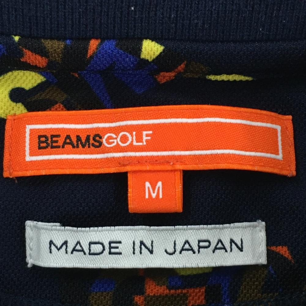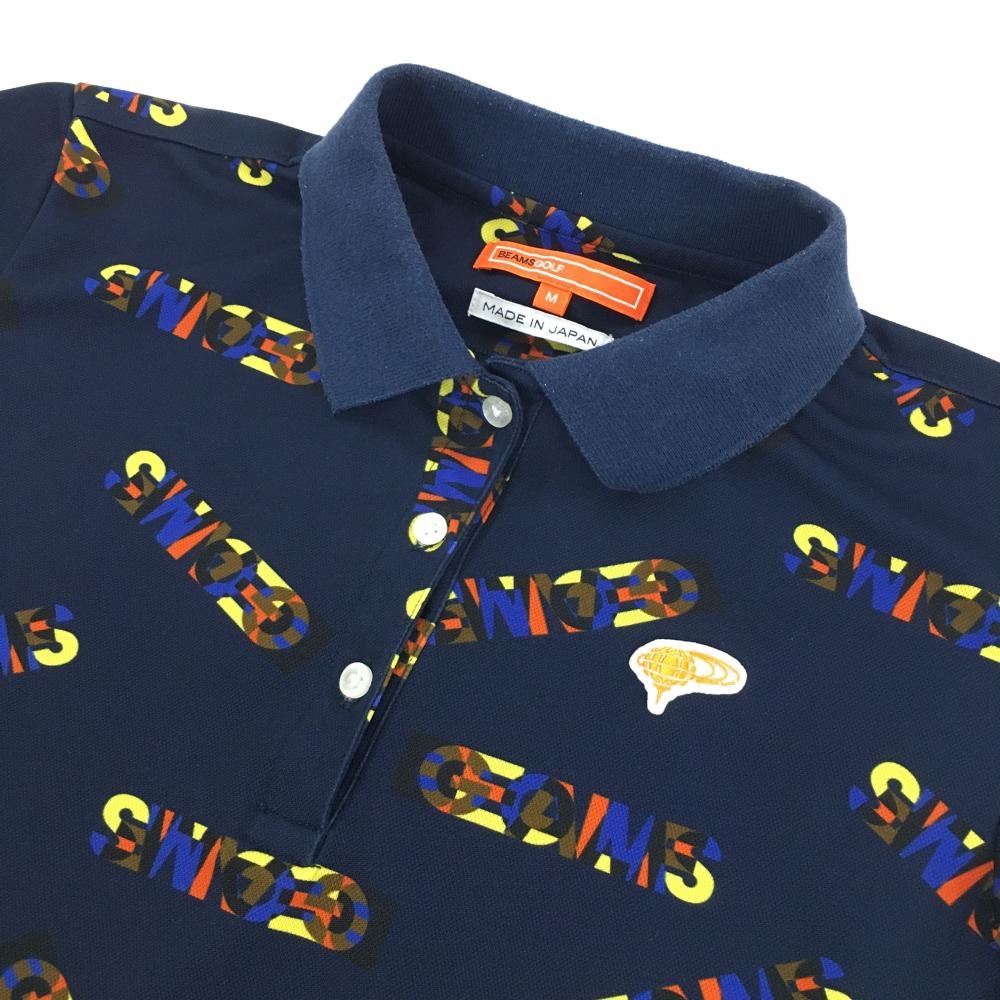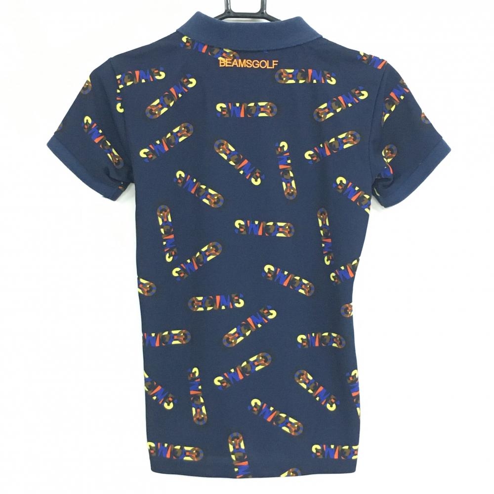 ビームスゴルフ 半袖ポロシャツ ネイビー×マルチカラー 英字総柄 ロゴワッペン レディース M ゴルフウェア BEAMS GOLF