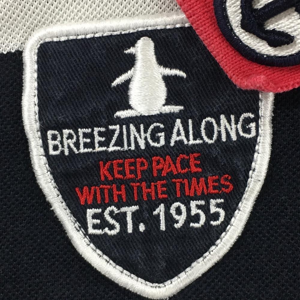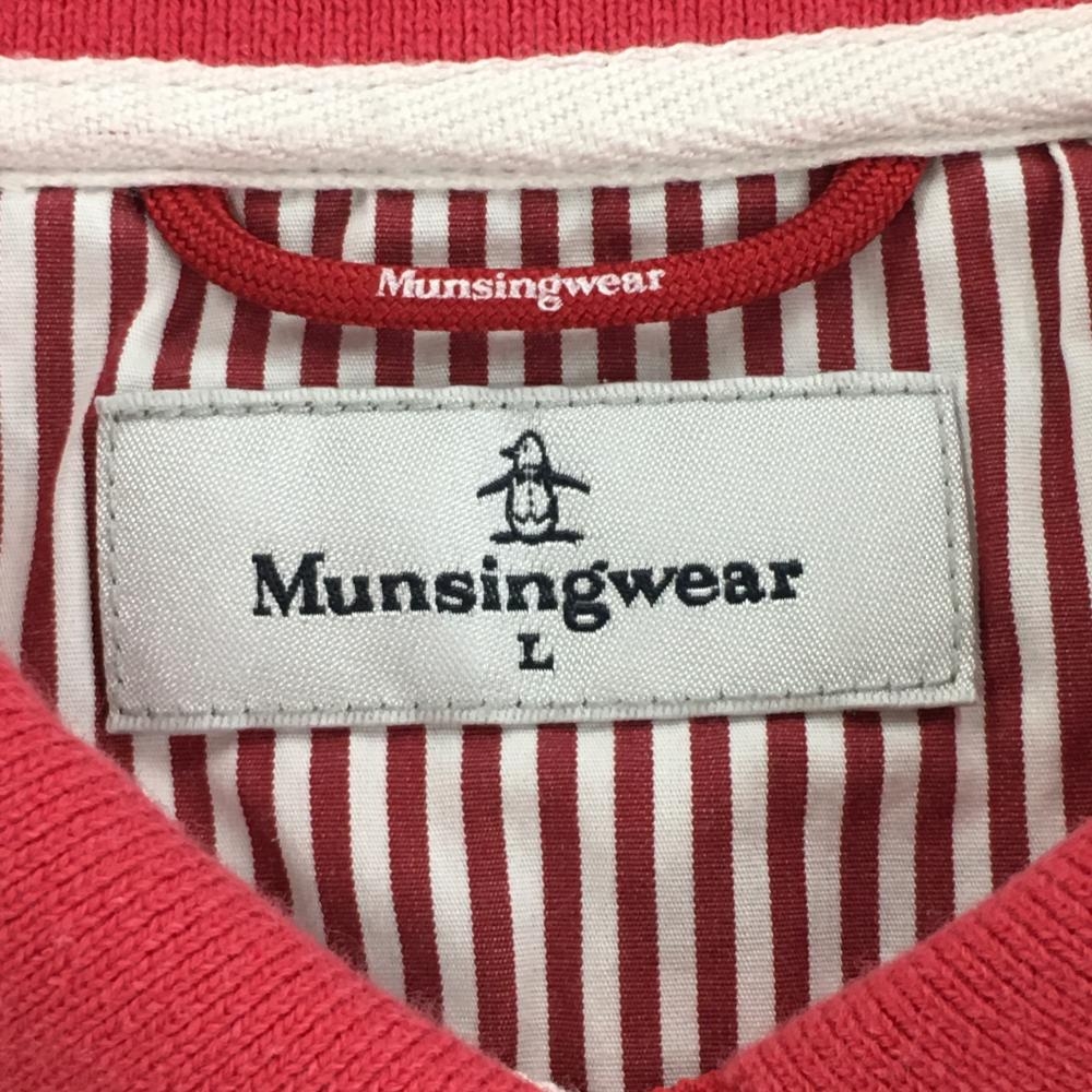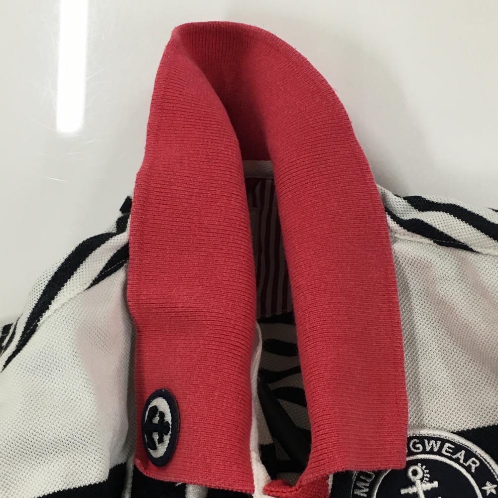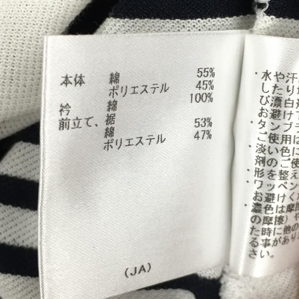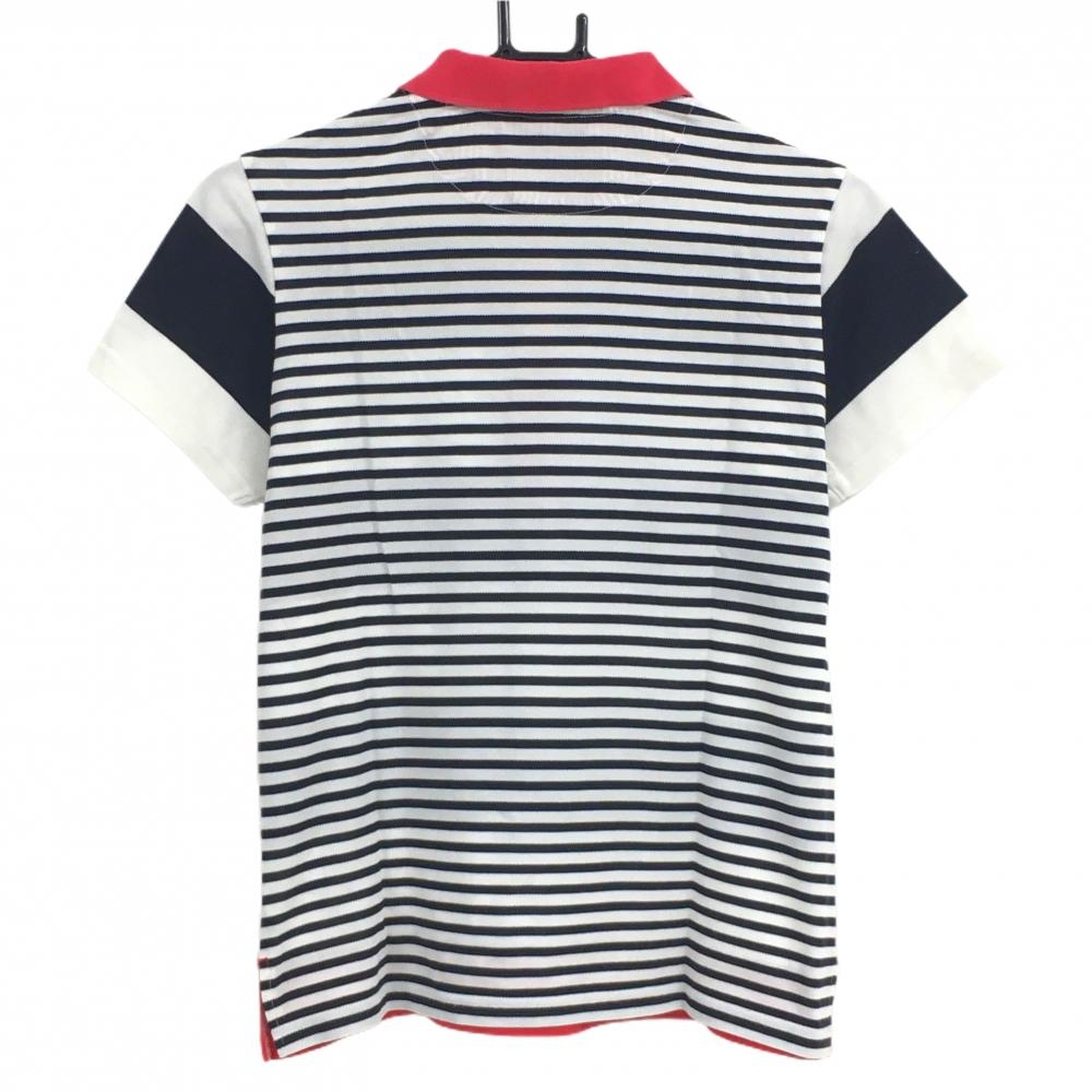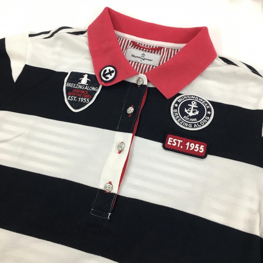 マンシングウェア 半袖ポロシャツ 白×ネイビー ボーダー 胸元ワッペン レディース L ゴルフウェア Munsingwear