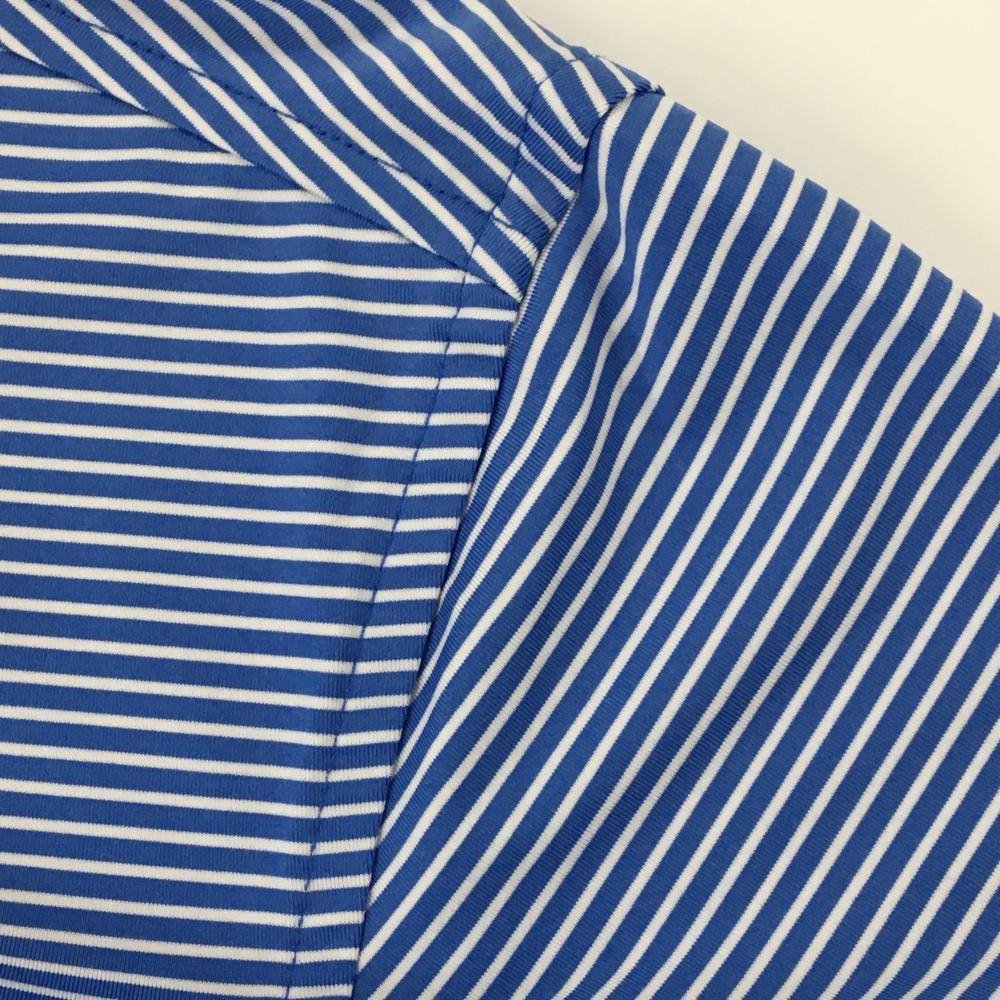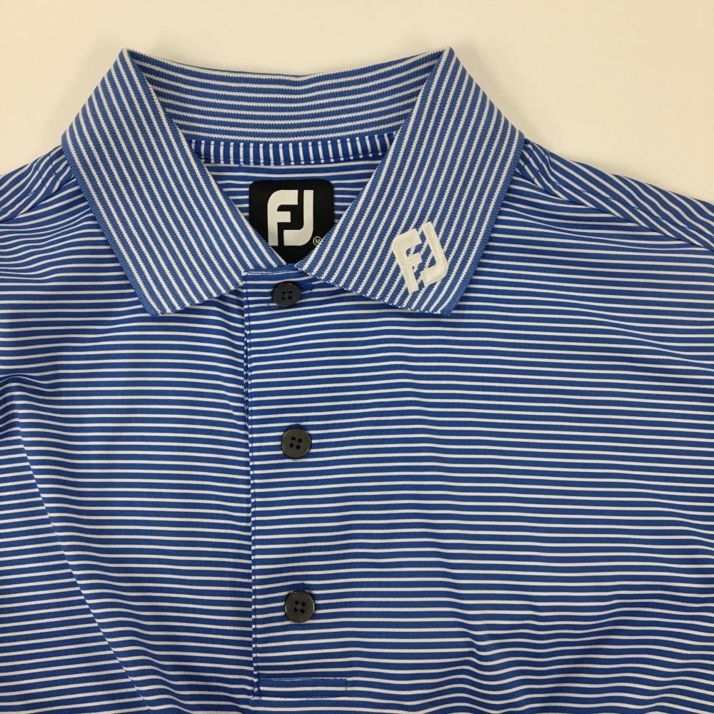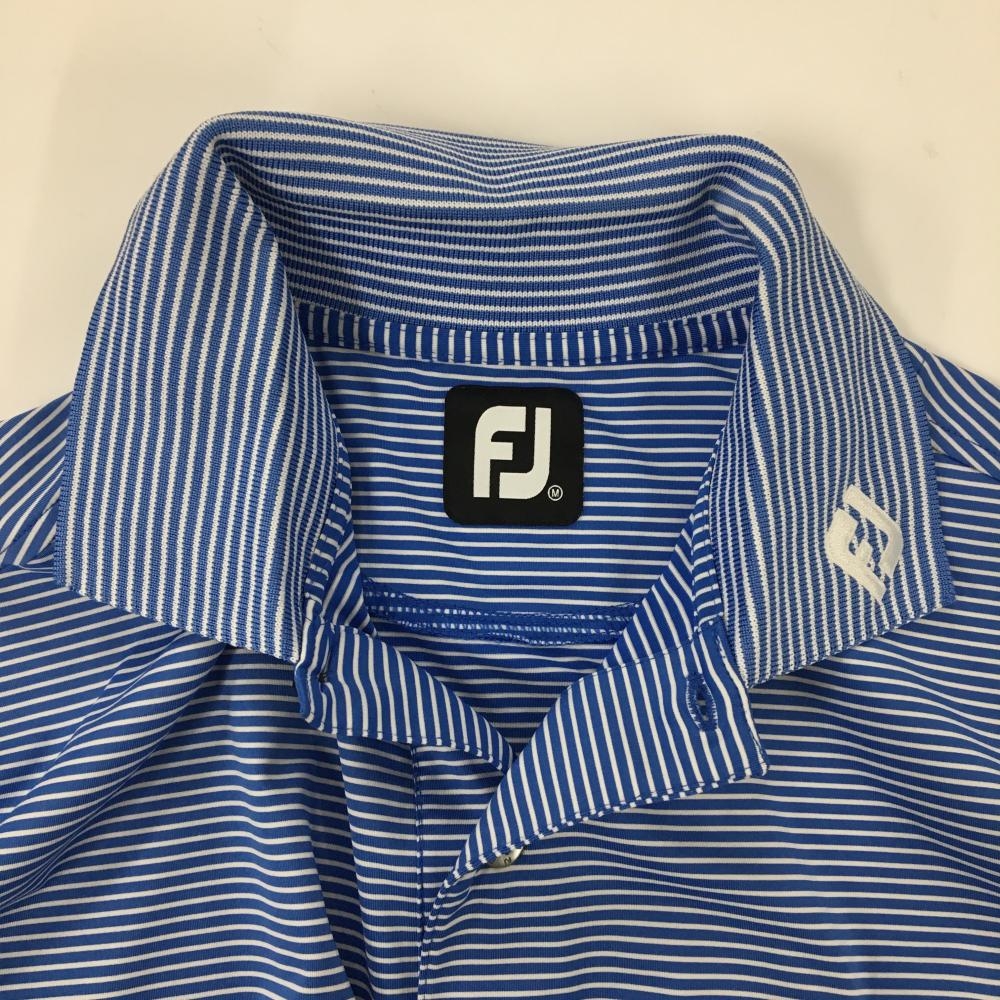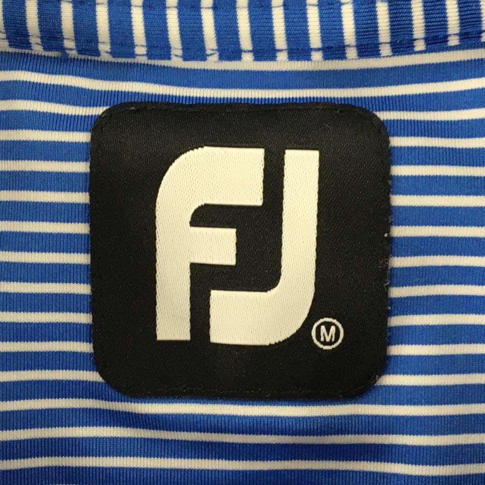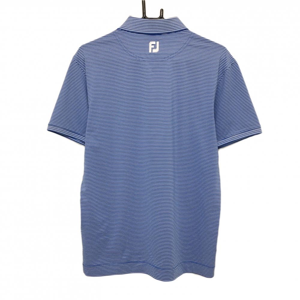 フットジョイ 半袖ポロシャツ ブルー×白 襟ロゴ ボーダー メンズ M ゴルフウェア FootJoy