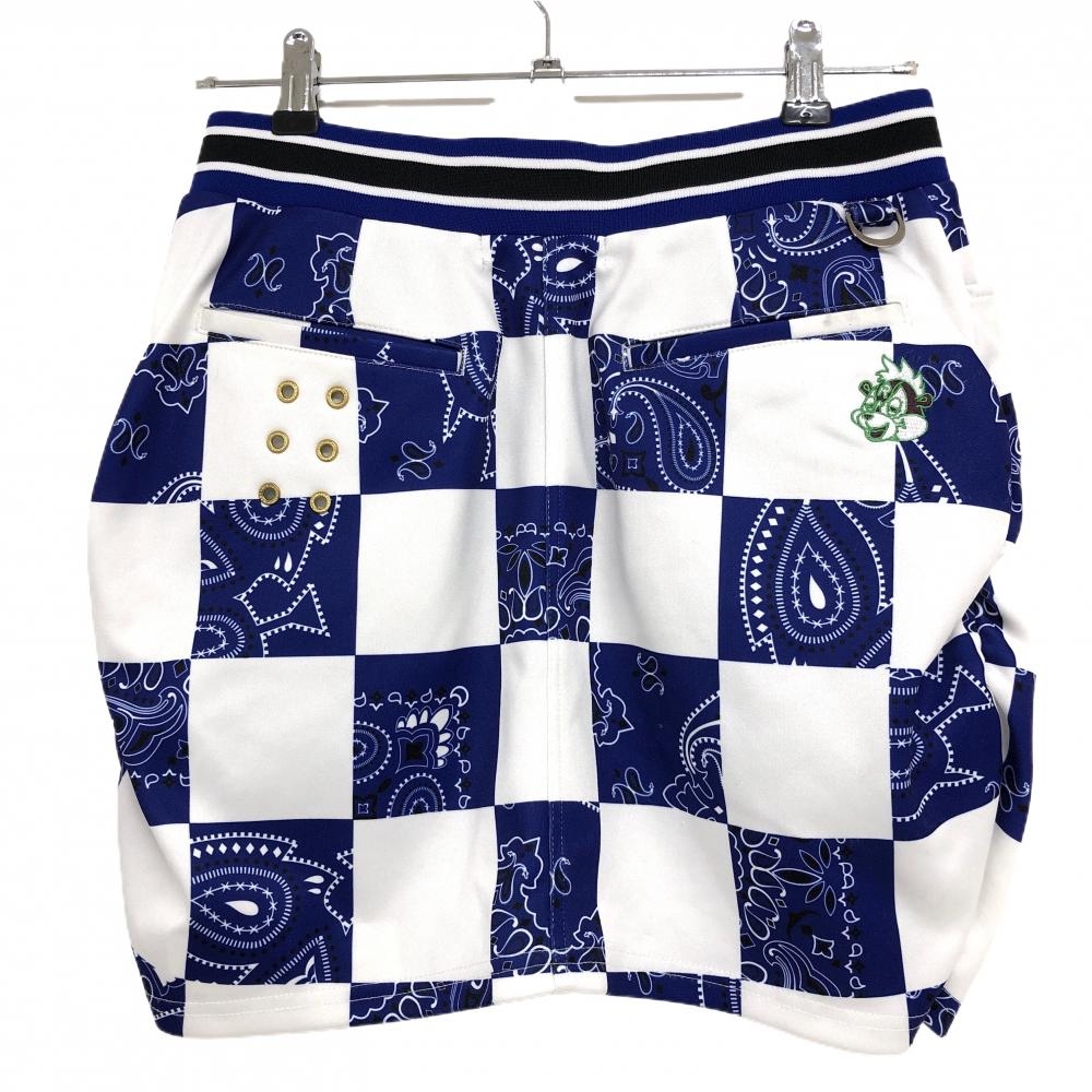 ラッセルノ スカート ブルー×白 ブロックチェック×ペイズリー レディース 2(L) ゴルフウェア RUSSELUNO