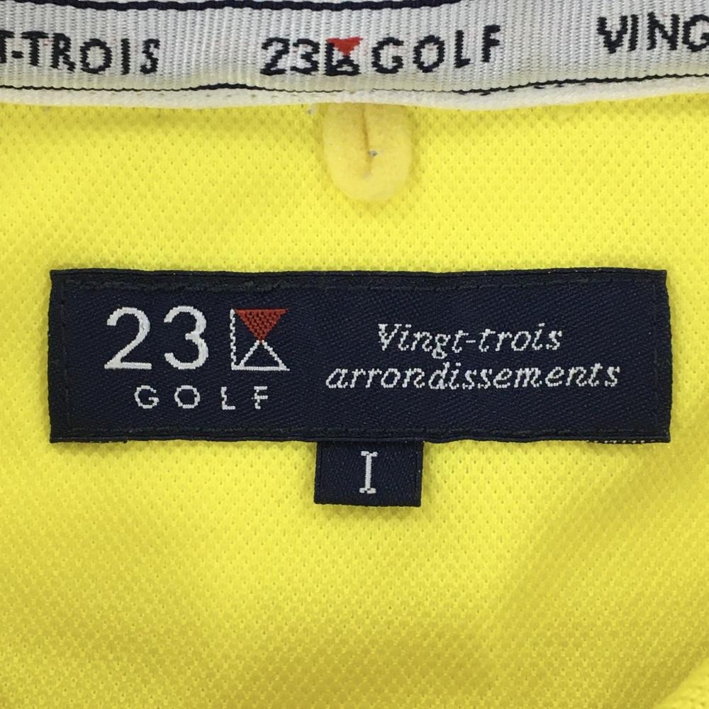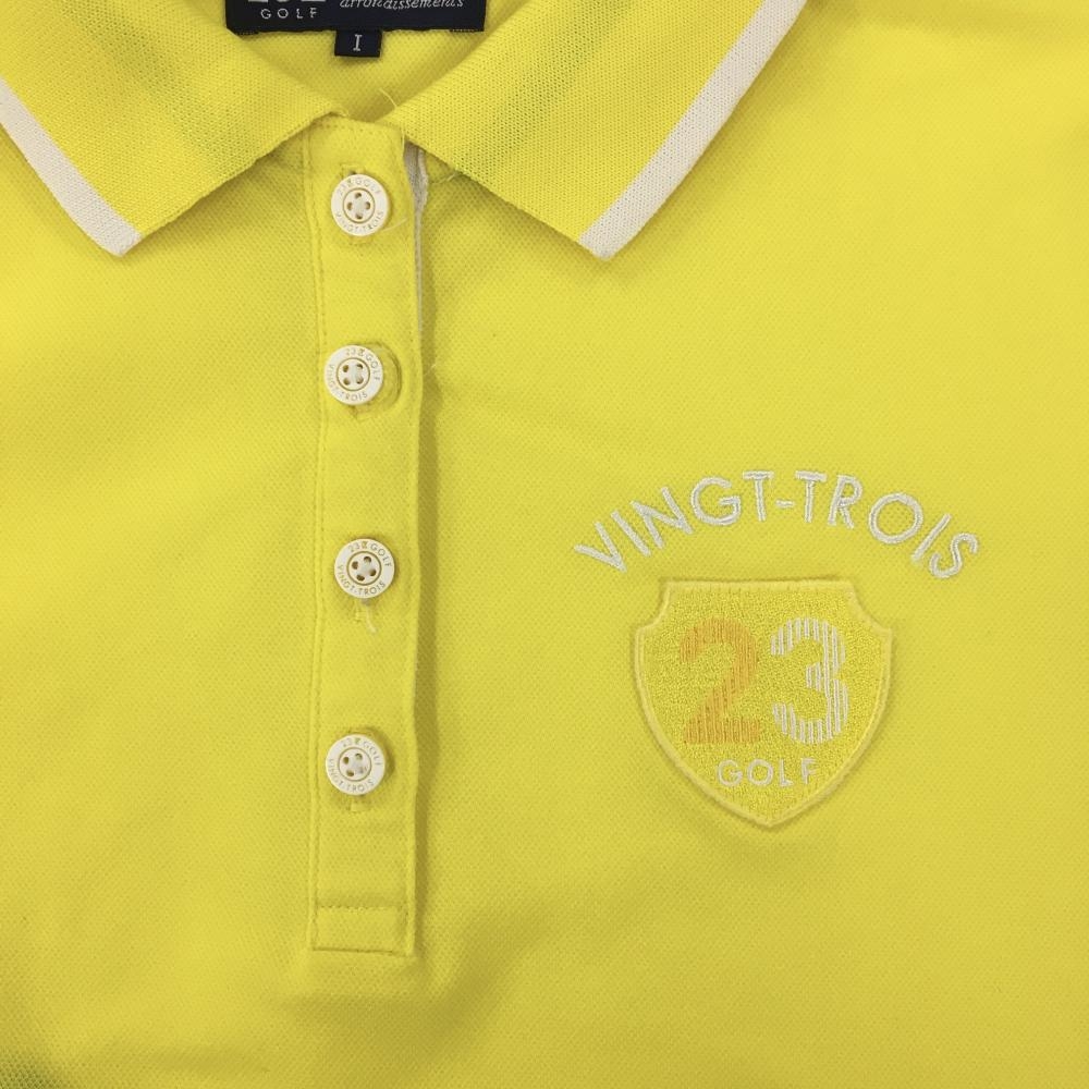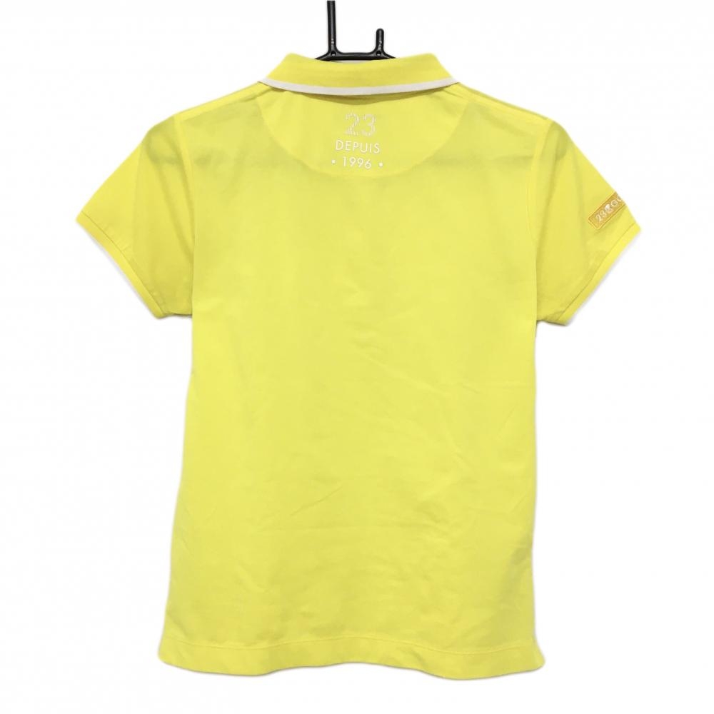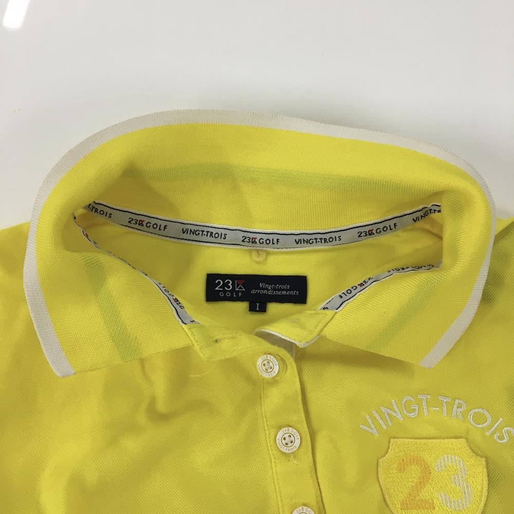 23区ゴルフ 半袖ポロシャツ イエロー×白 襟裏ボーダー ロゴワッペン レディース I(M) ゴルフウェア 23区
