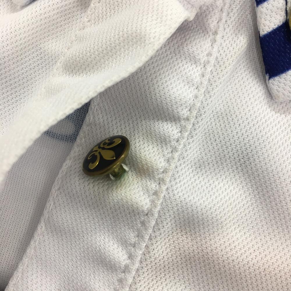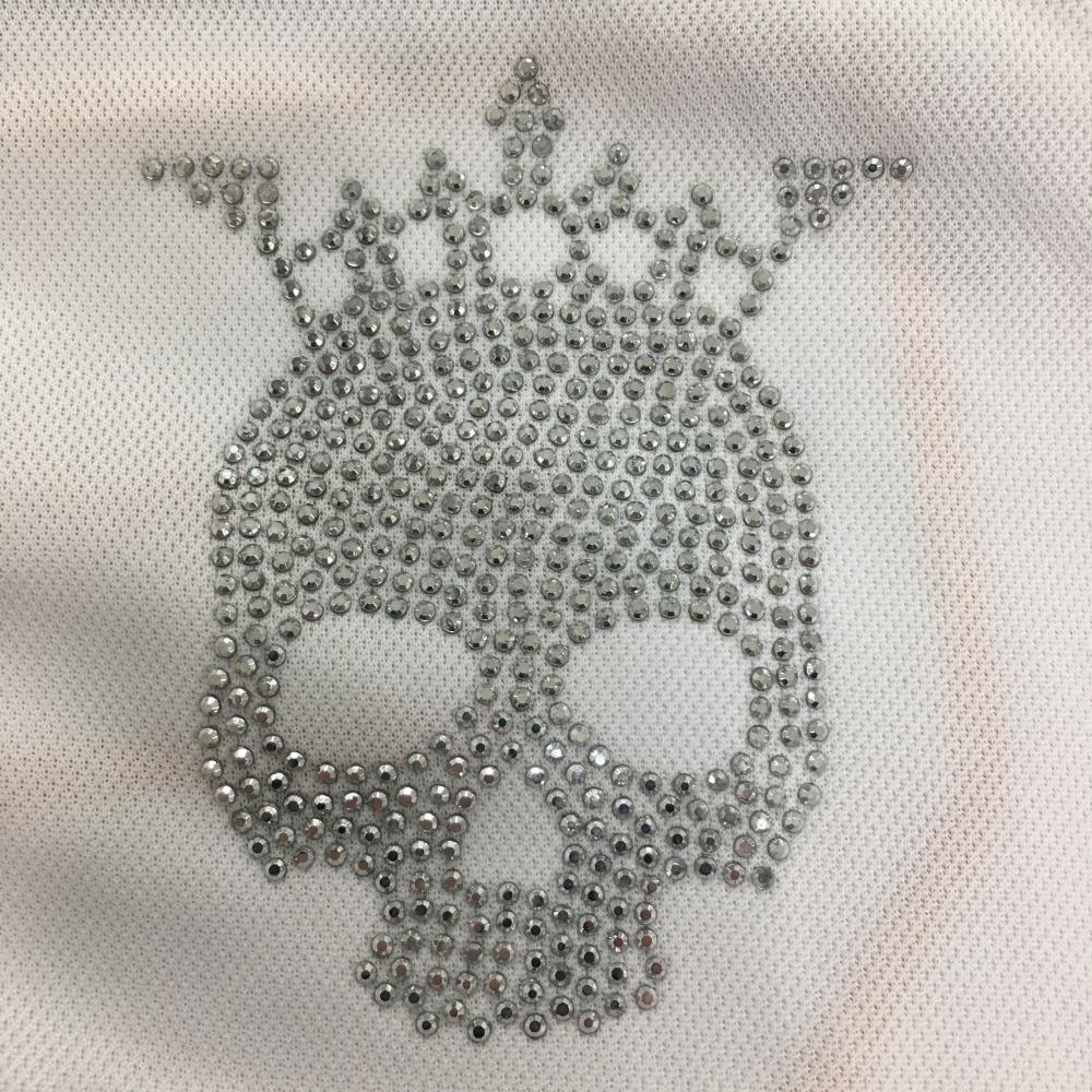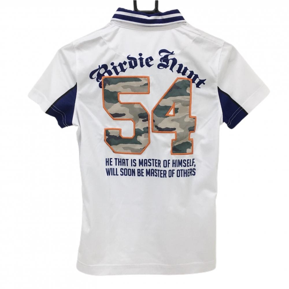 【美品】バーディーハント 半袖ポロシャツ 白×ブルー スカル ラインストーン レディース M ゴルフウェア Birdie hunt