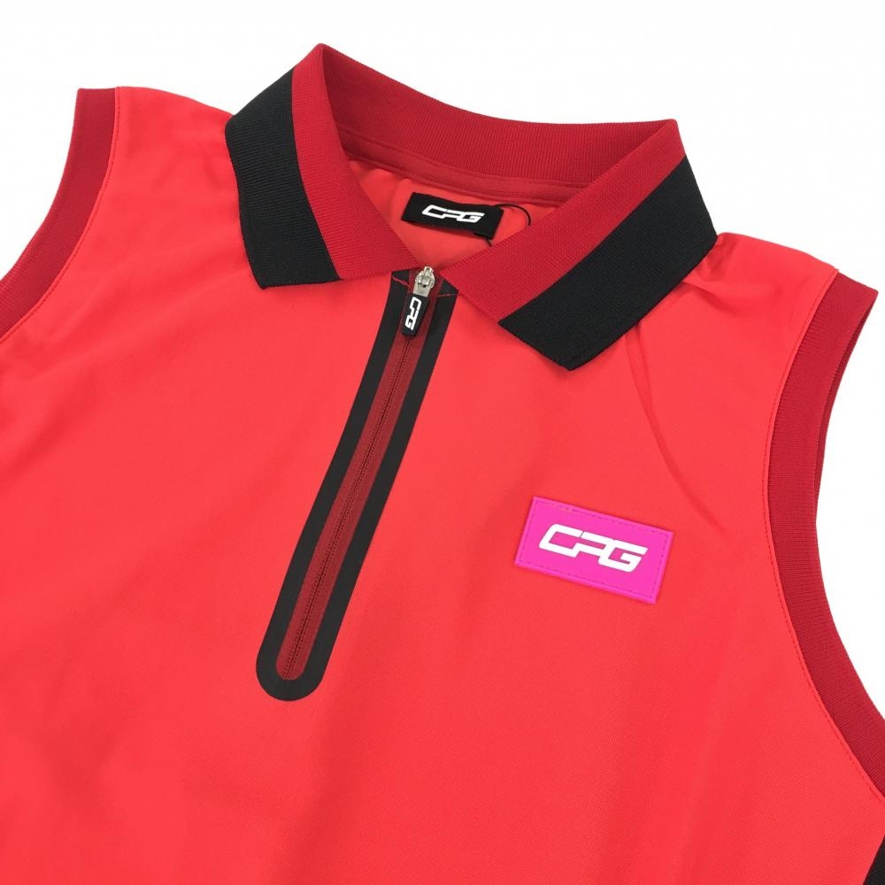 【新品】CPG ノースリーブワンピース レッド×黒 襟バイカラー ハーフジップ インナーパンツ付 レディース L ゴルフウェア CPG