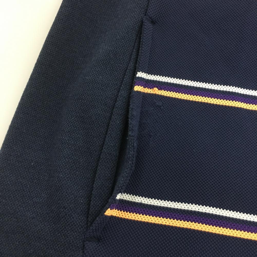 ニューバランスゴルフ 半袖ポロワンピース ネイビー×オレンジ ボーダー スニーカーワッペン レディース 2(L) ゴルフウェア New Balance