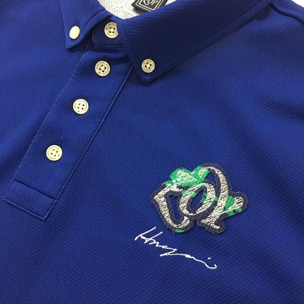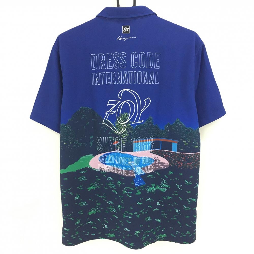 【超美品】ゾーイ 半袖ポロシャツ ブルー 背面ビックプリント ロゴワッペン ボタンダウン メンズ 3(L) ゴルフウェア ZOY
