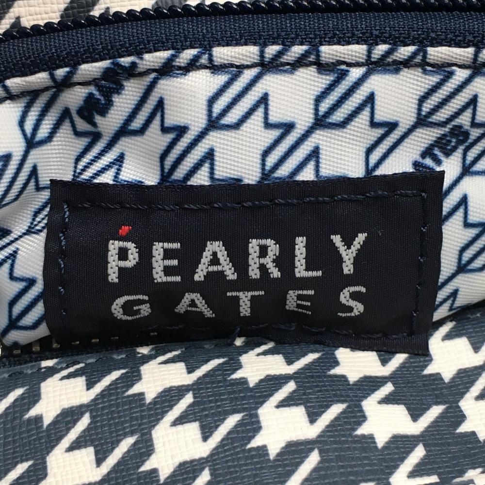 【美品】パーリーゲイツ×PEANUTS カートバッグ ネイビー×白 千鳥格子 スヌーピー 内ポケット付ゴルフ PEARLY GATES