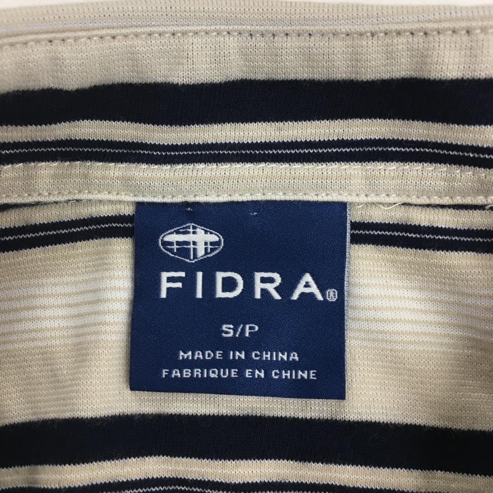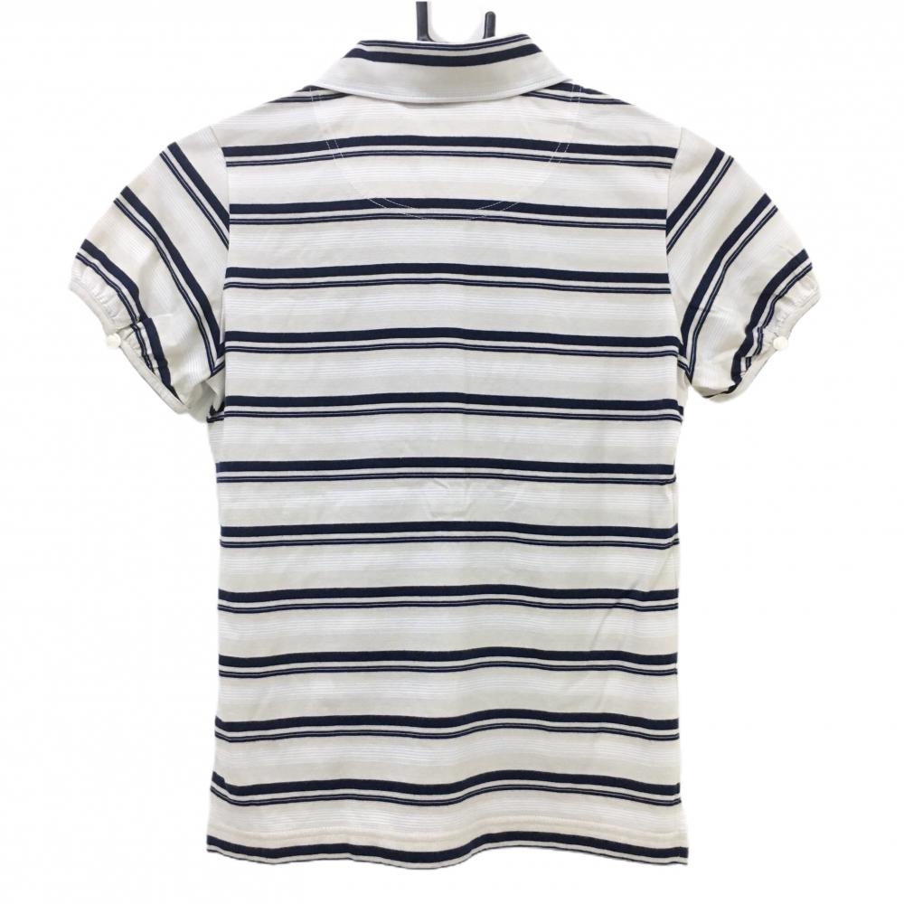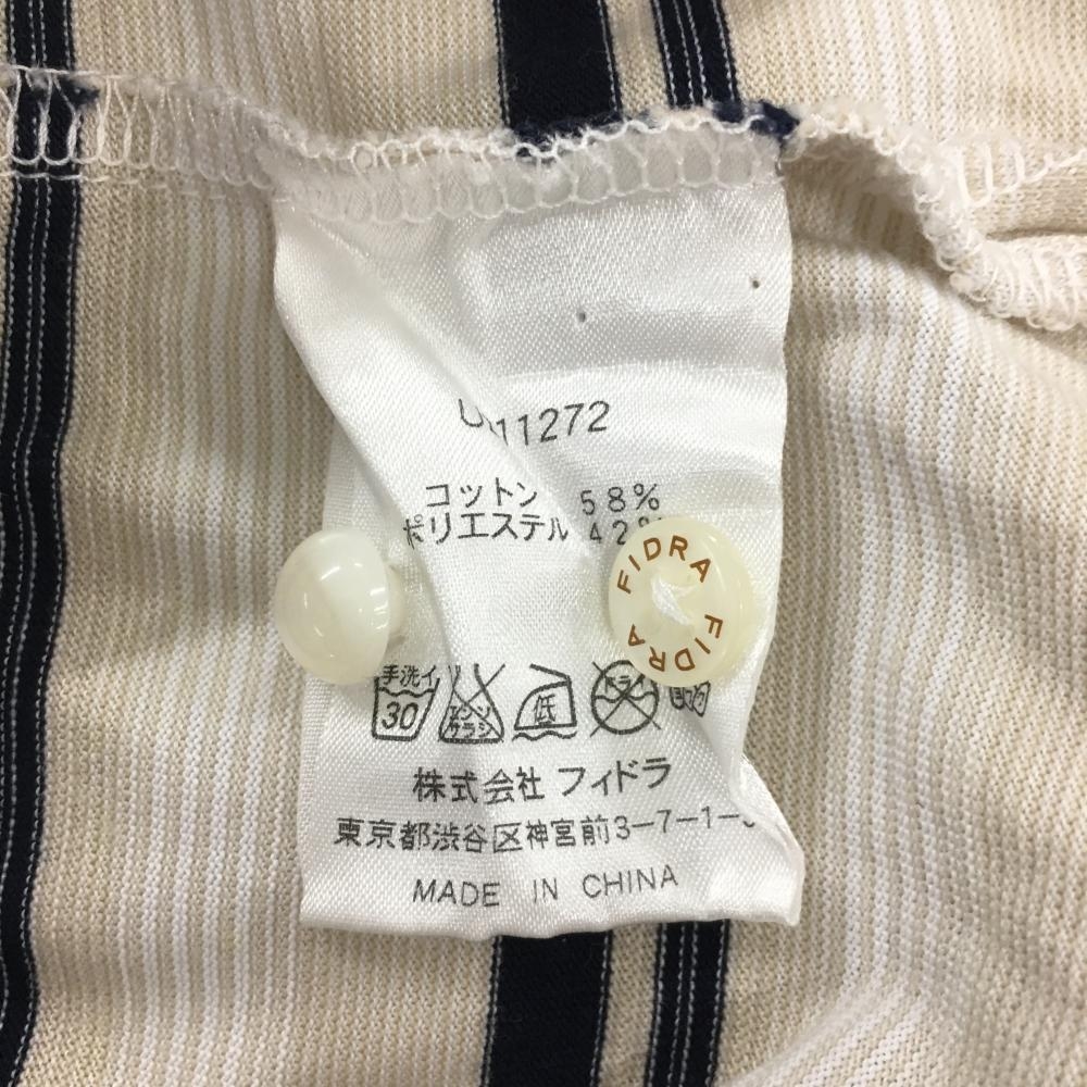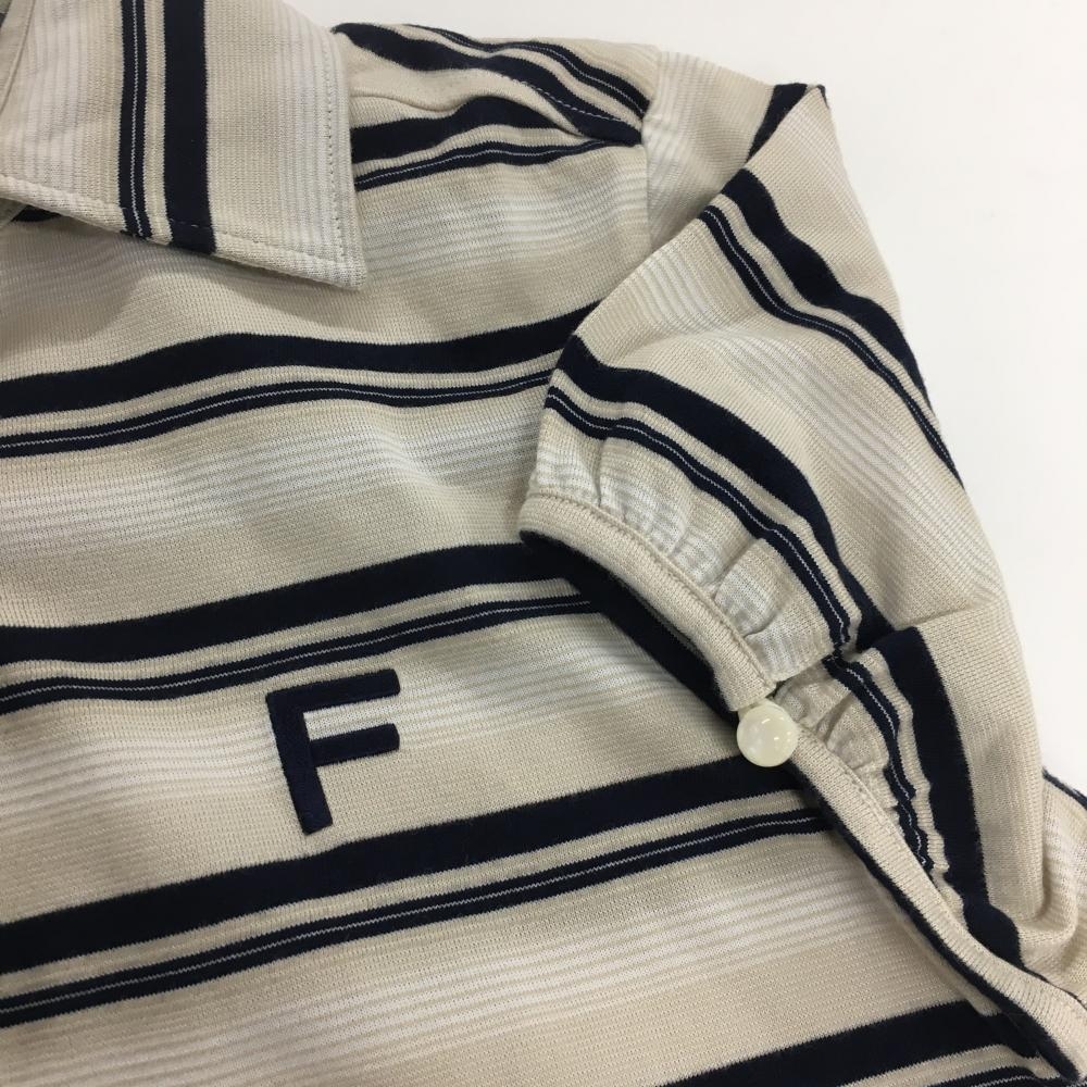 【美品】フィドラ 半袖ポロシャツ ライトベージュ×ネイビー ボーダー 袖口ボタン レディース S/P ゴルフウェア FIDRA