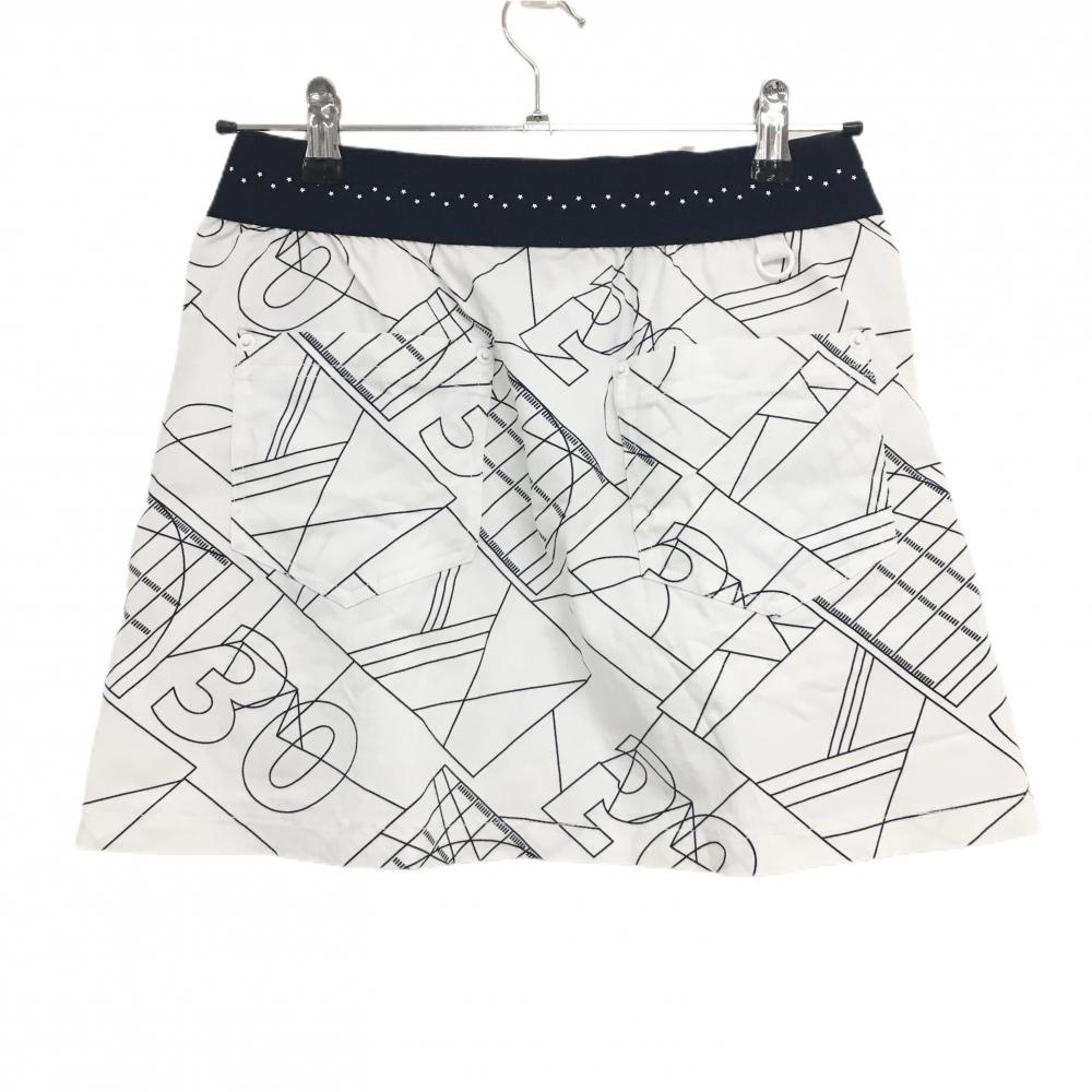 【超美品】キャロウェイ スカート 白×ネイビー 総柄 ウエスト後ろゴム レディース M ゴルフウェア Callaway