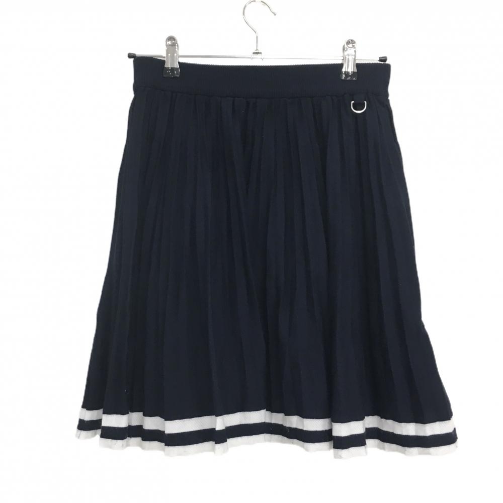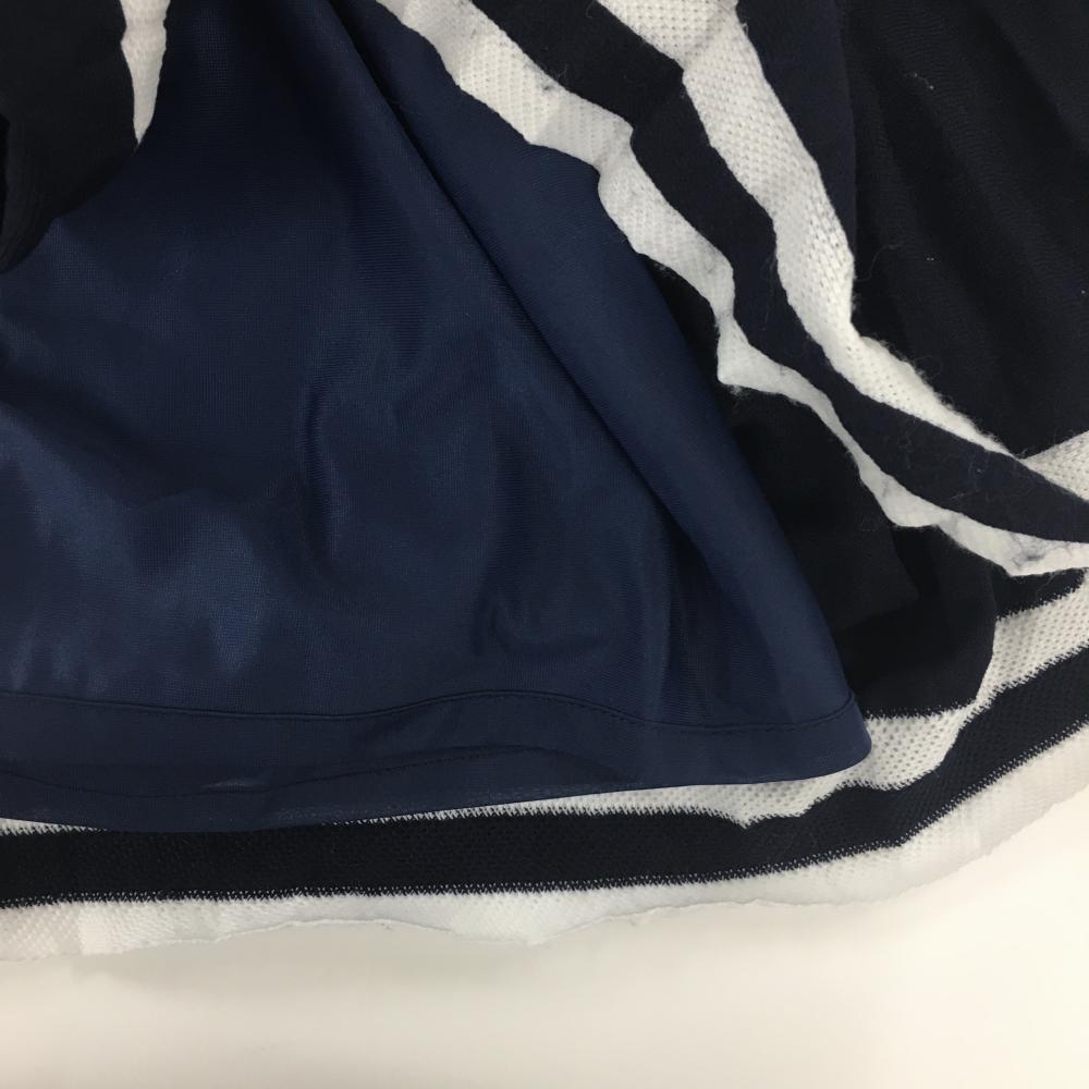 マリクレールスポール プリーツスカート ネイビー×白 ウエストゴム 調節紐 裏地付き レディース M ゴルフウェア marie claire