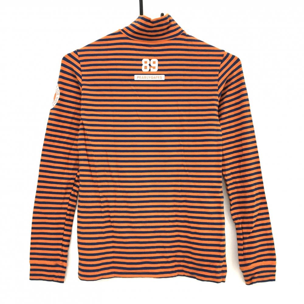 パーリーゲイツ 長袖ハイネックシャツ オレンジ×ネイビー ボーダー レディース 0(S) ゴルフウェア PEARLY GATES