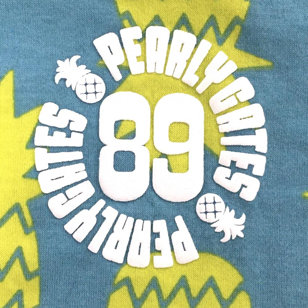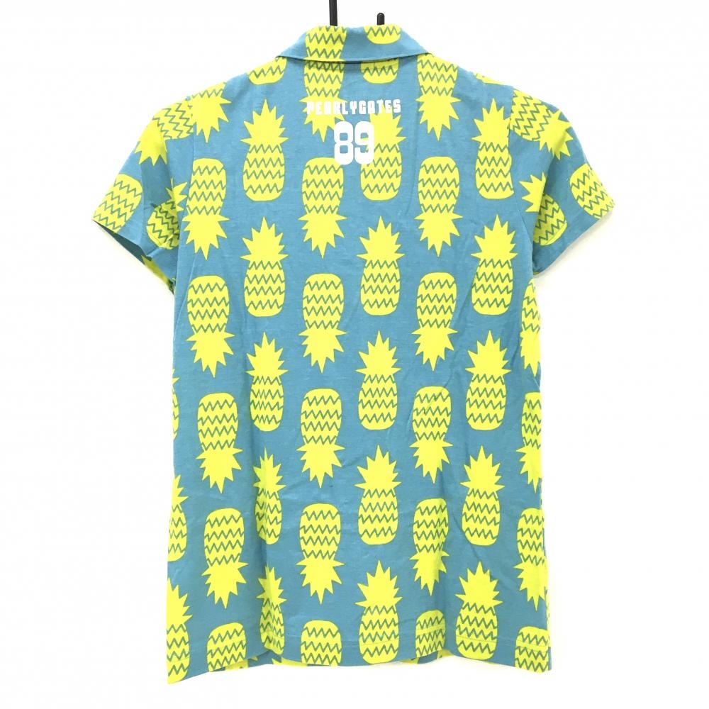 【美品】パーリーゲイツ 半袖ポロシャツ ブルー系×イエロー パイナップル総柄 レディース 0(S) ゴルフウェア PEARLY GATES