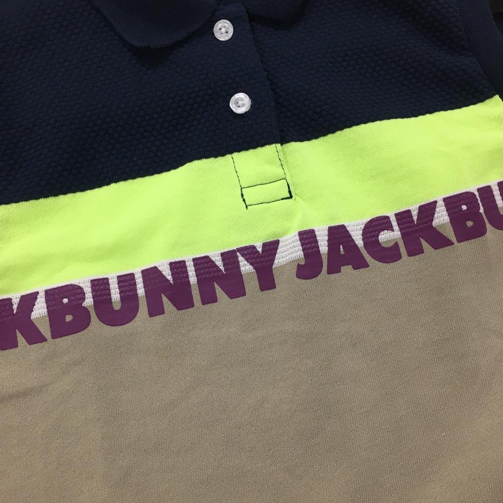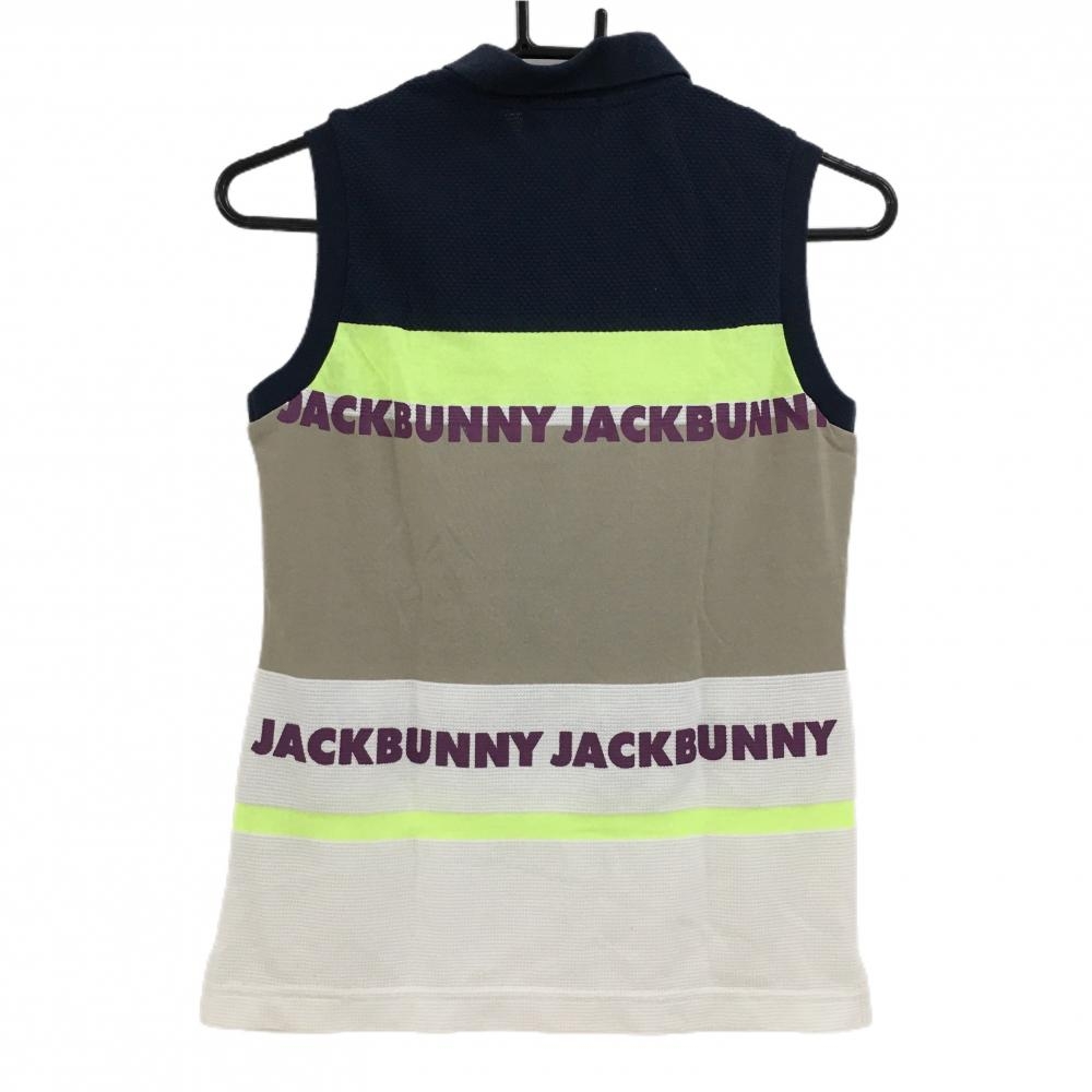 【美品】ジャックバニー ノースリーブポロシャツ ネイビー×ブラウン×白 ボーダー風 レディース 0(S) ゴルフウェア Jack Bunny
