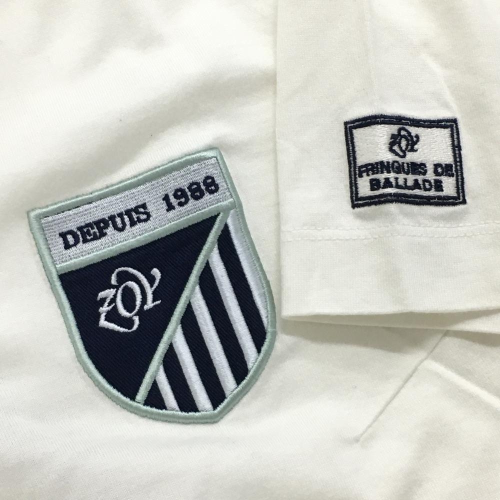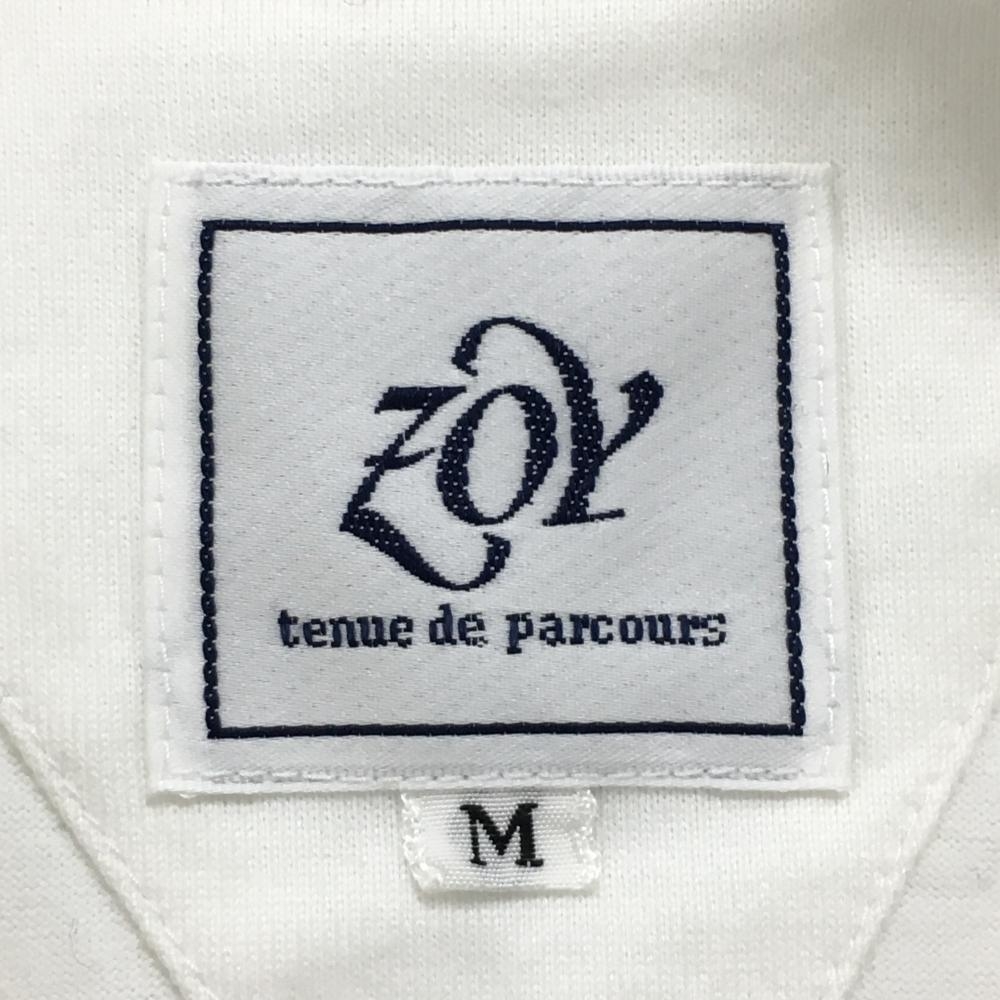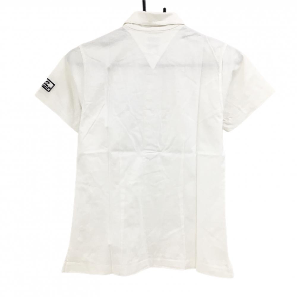 【美品】ゾーイ 半袖ポロシャツ 白×ネイビー ロゴワッペン レディース M ゴルフウェア ZOY