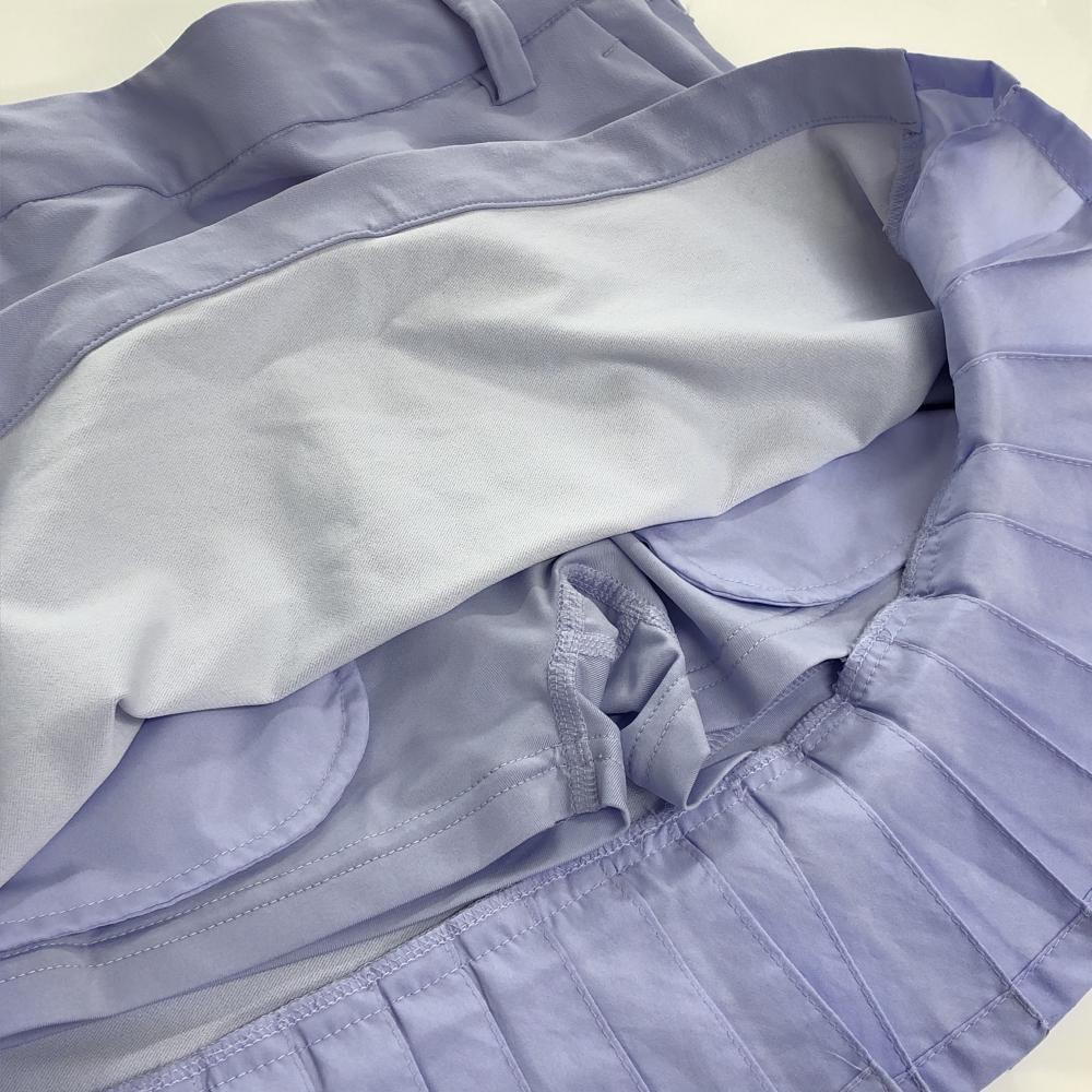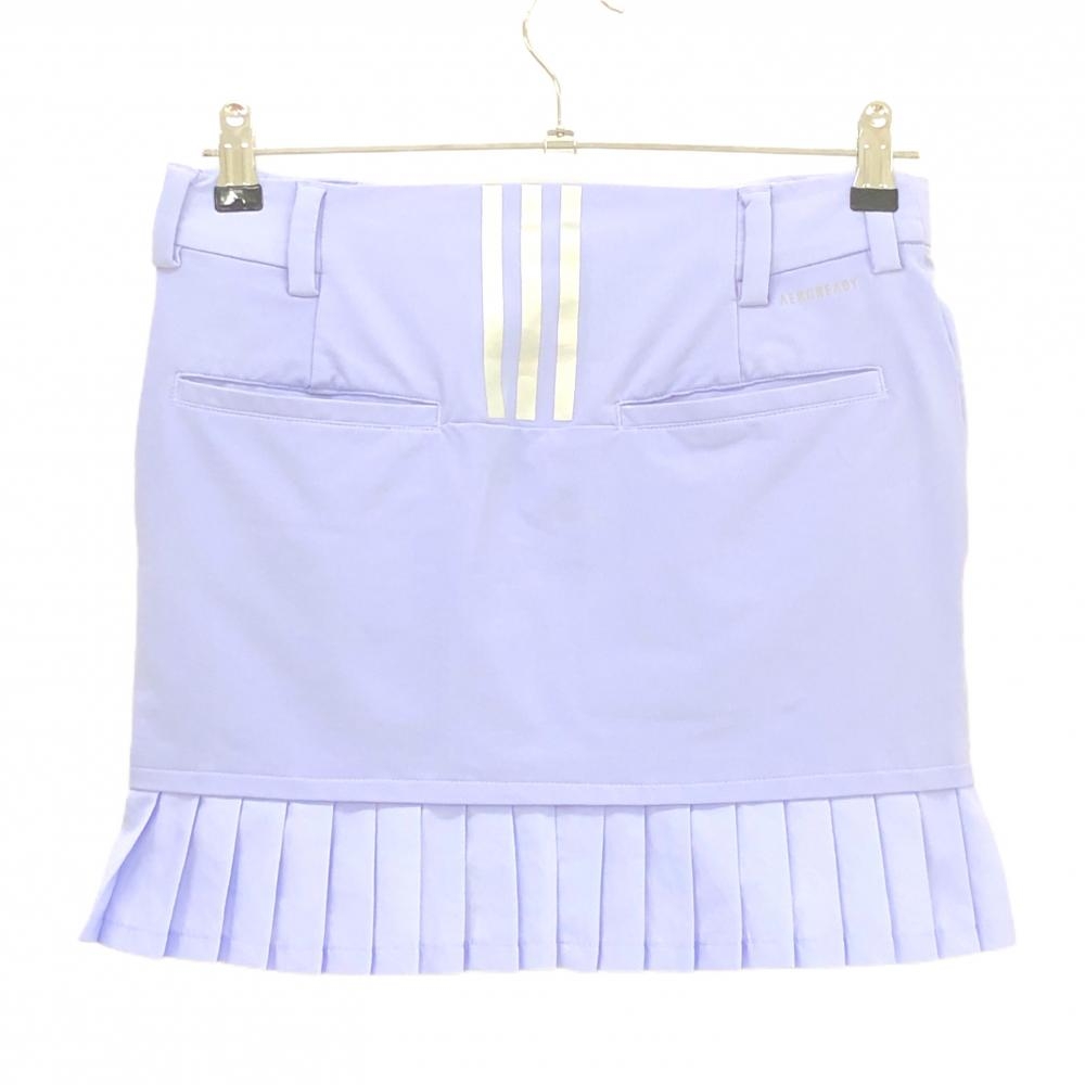【美品】アディダス スカート ライトパープル 背面裾プリーツ インナーパンツ付 3ライン レディース S ゴルフウェア adidas