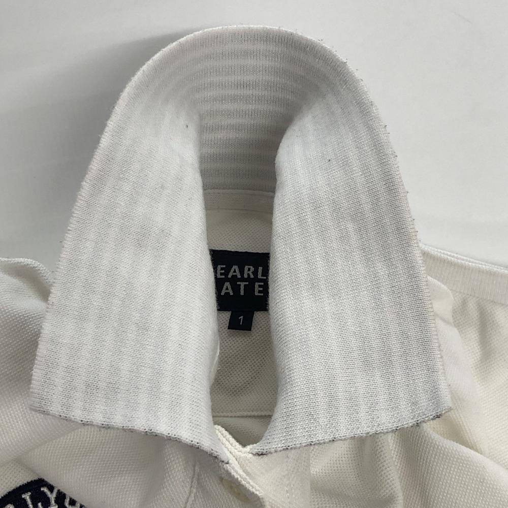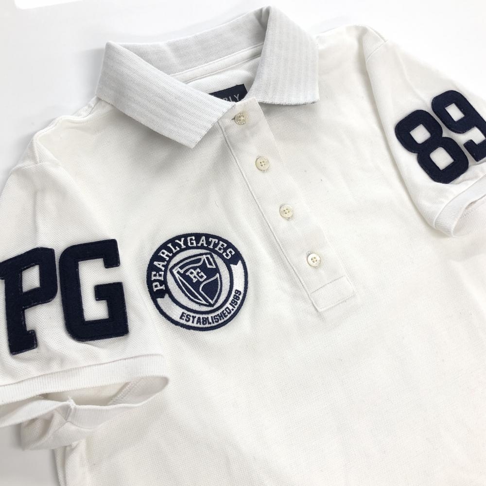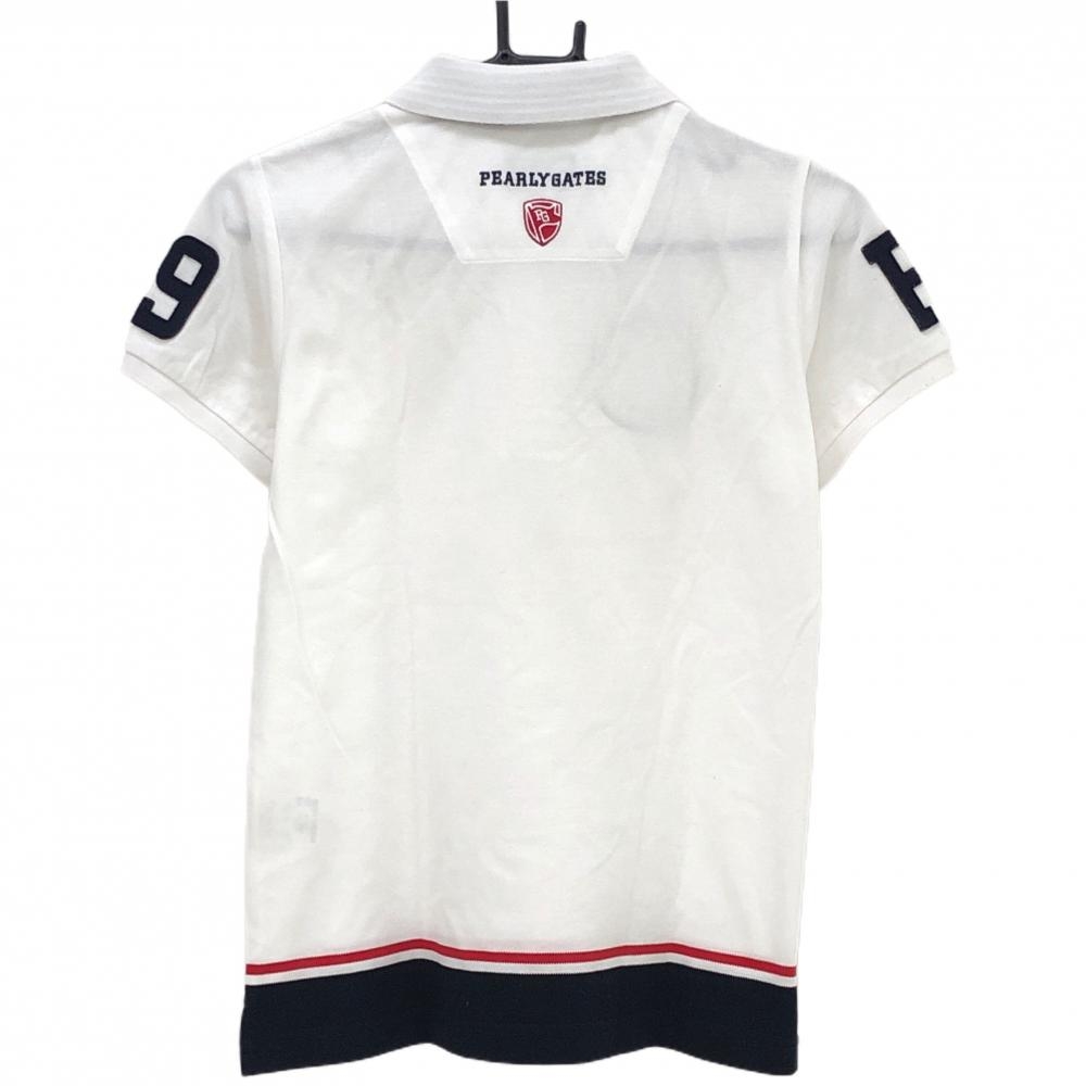 パーリーゲイツ 半袖ポロシャツ 白×ネイビー 襟裏ボーダー ワッペン レディース 1(M) ゴルフウェア PEARLY GATES