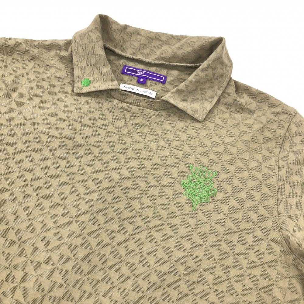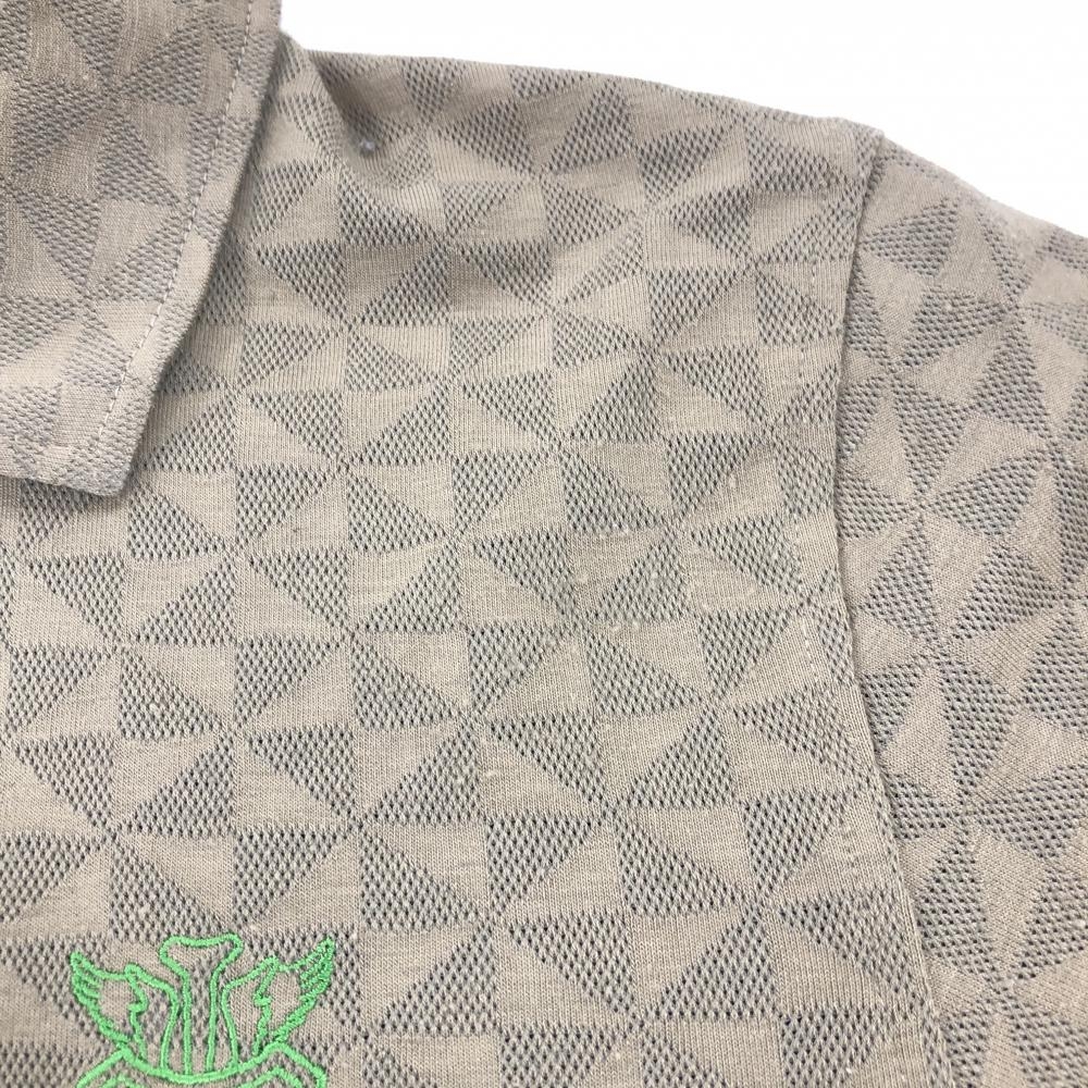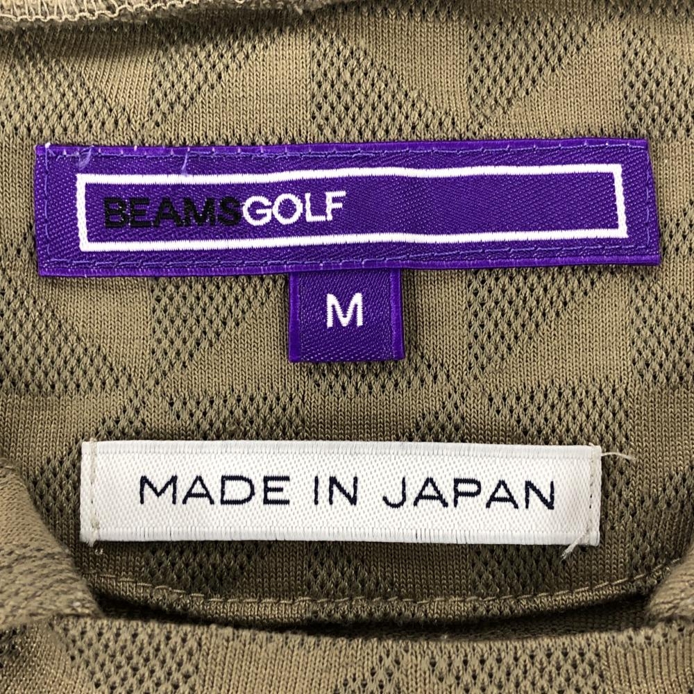 ビームスゴルフ 襟付き半袖シャツ ブラウンカーキ×カーキ 総柄地模様 ロゴ刺しゅう メンズ M ゴルフウェア BEAMS GOLF