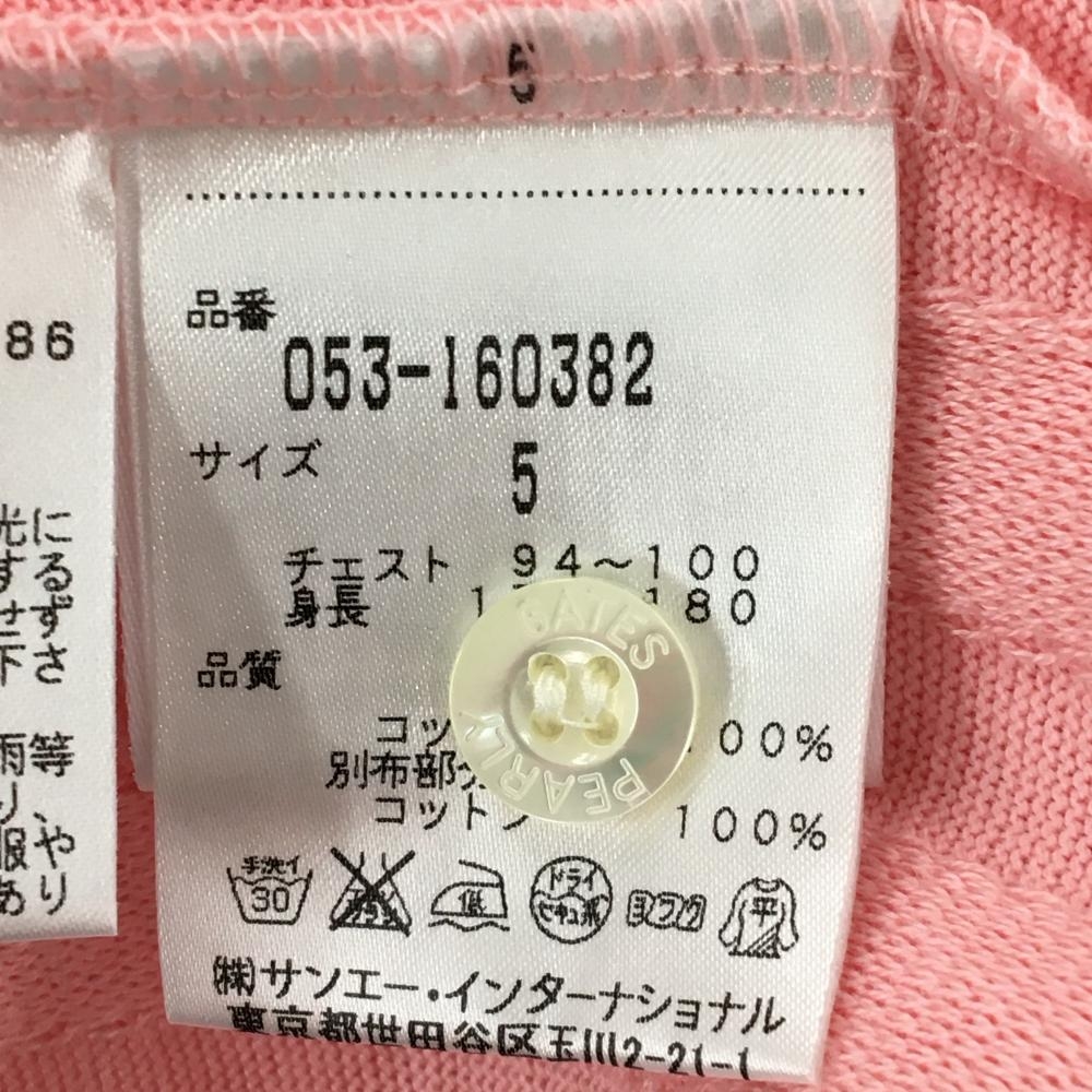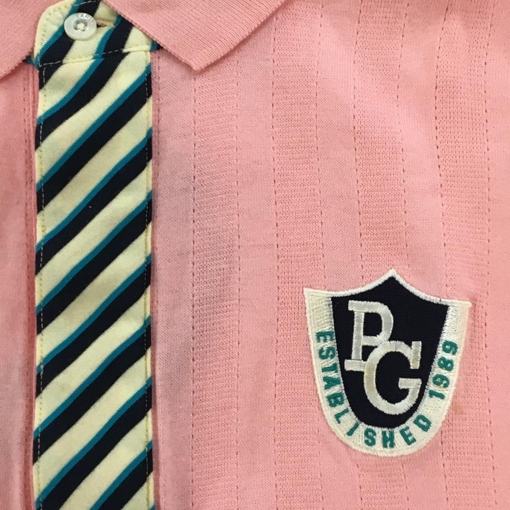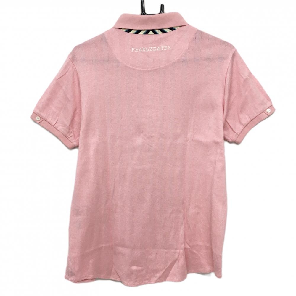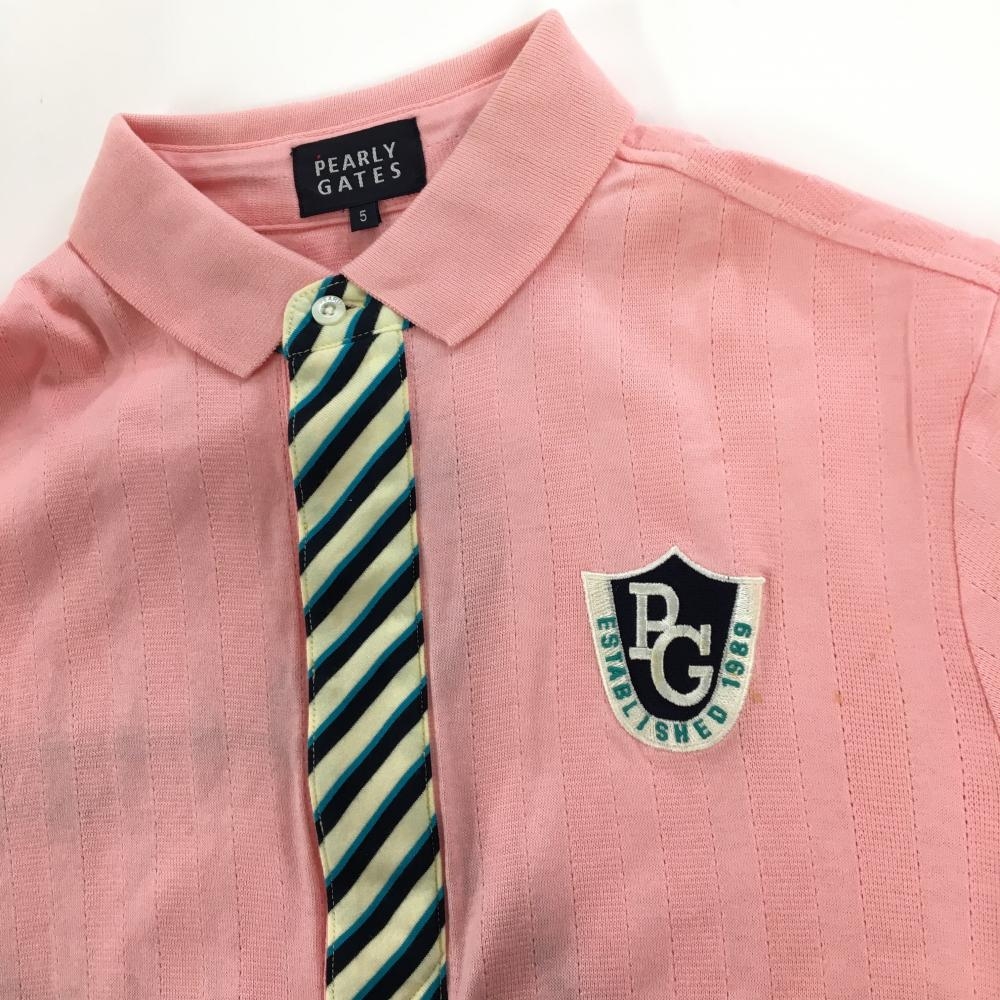 パーリーゲイツ 半袖ポロシャツ ライトピンク ストライプ地模様 前立て斜めストライプ メンズ 5(L) ゴルフウェア PEARLY GATES