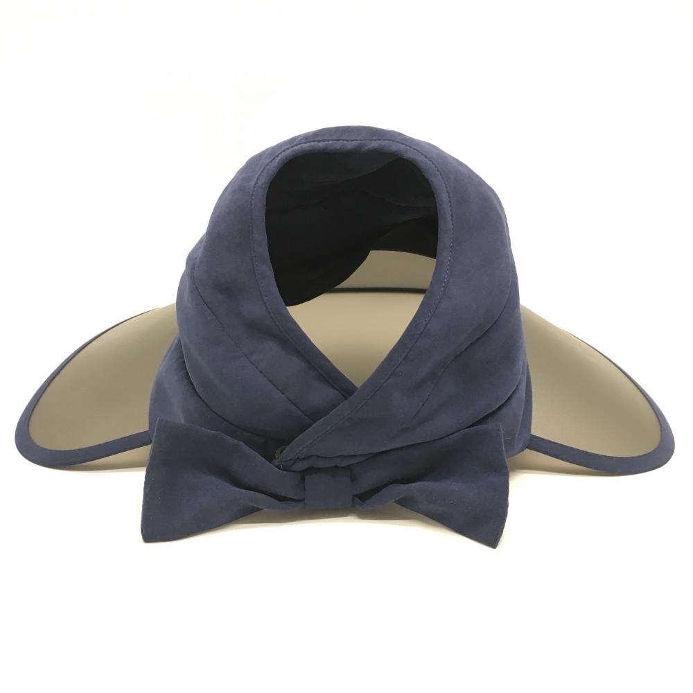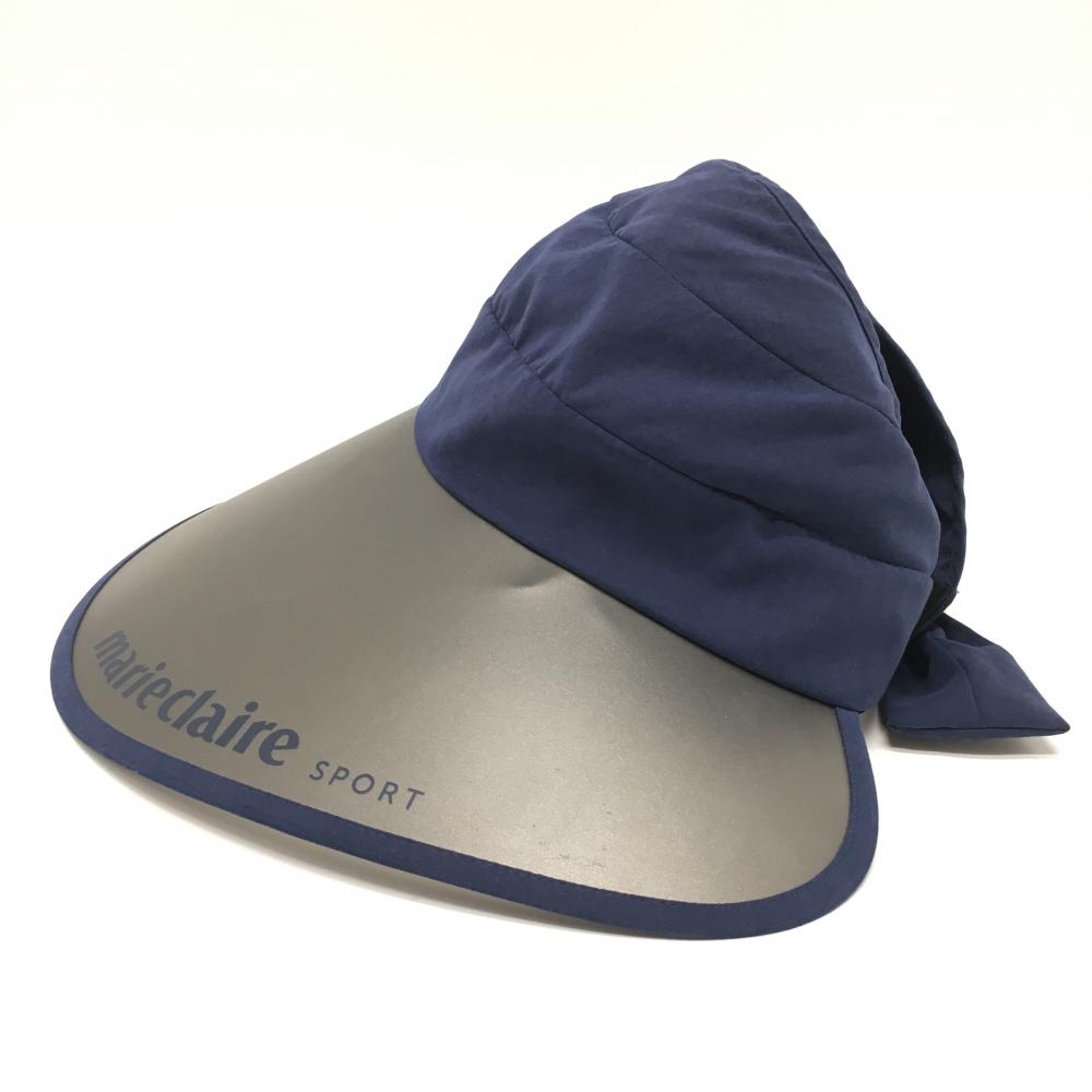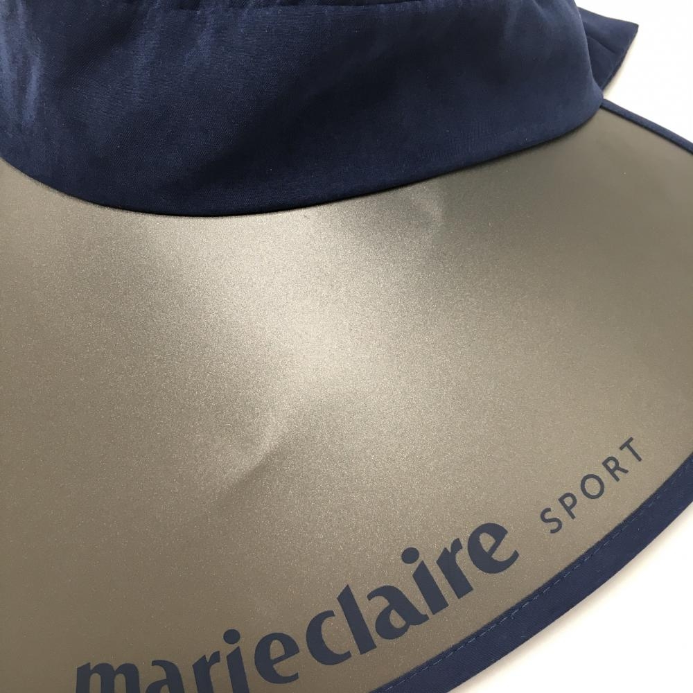 マリクレールスポール つば広サンバイザー ネイビー 後ろリボン レディース ゴルフウェア marie claire