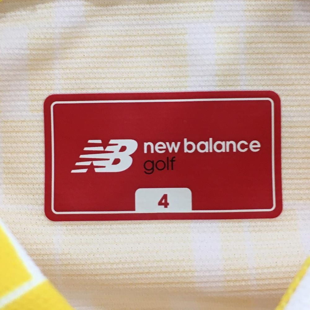 【超美品】ニューバランスゴルフ 半袖ポロシャツ イエロー×白 ブロック柄 メンズ 4(M) ゴルフウェア New Balance