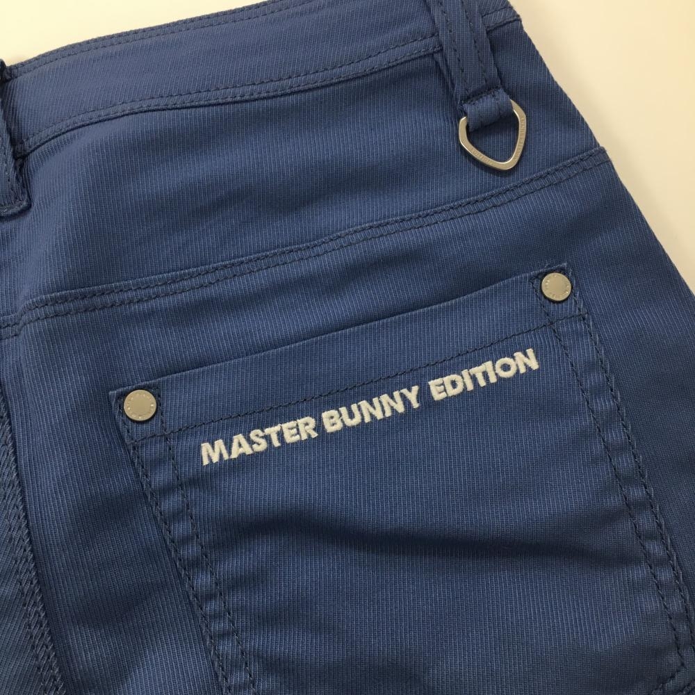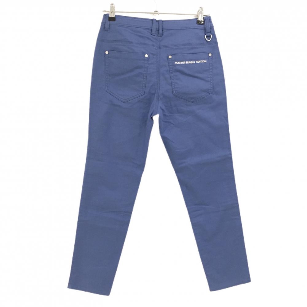 【超美品】マスターバニー パンツ スモーキーブルー ストレッチ ロゴ刺しゅう レディース 1(M) ゴルフウェア MASTER BUNNY EDITION